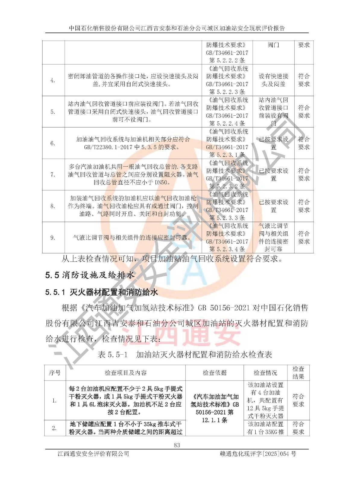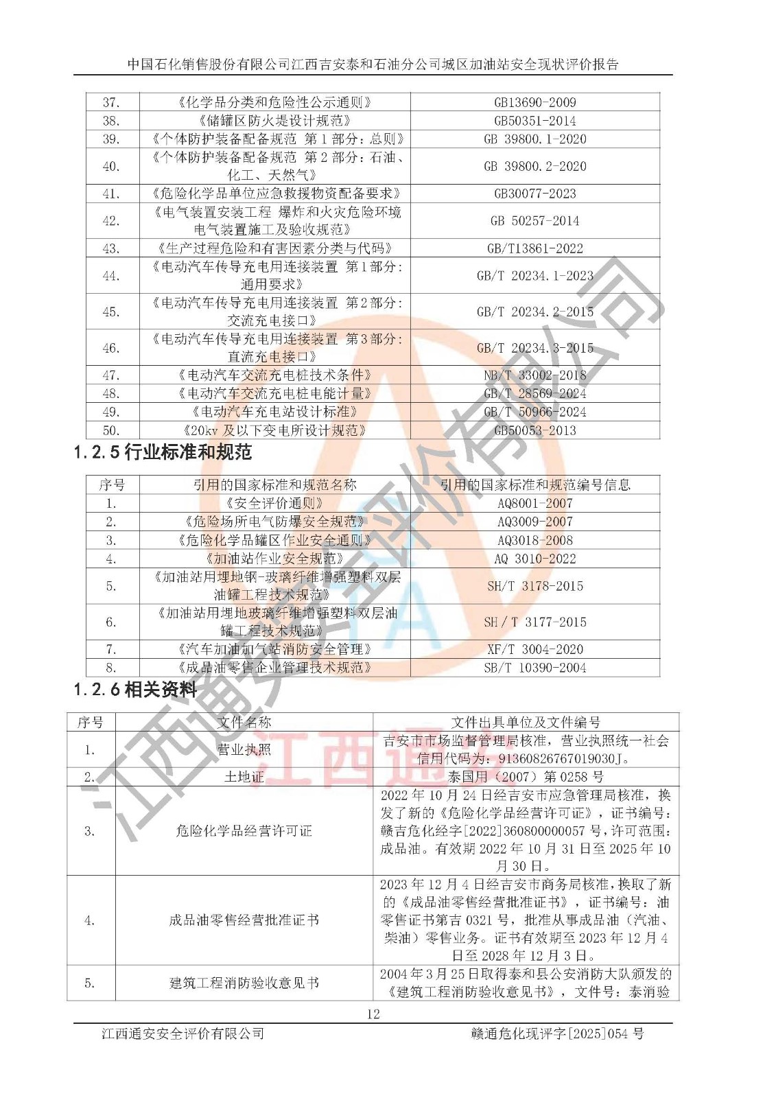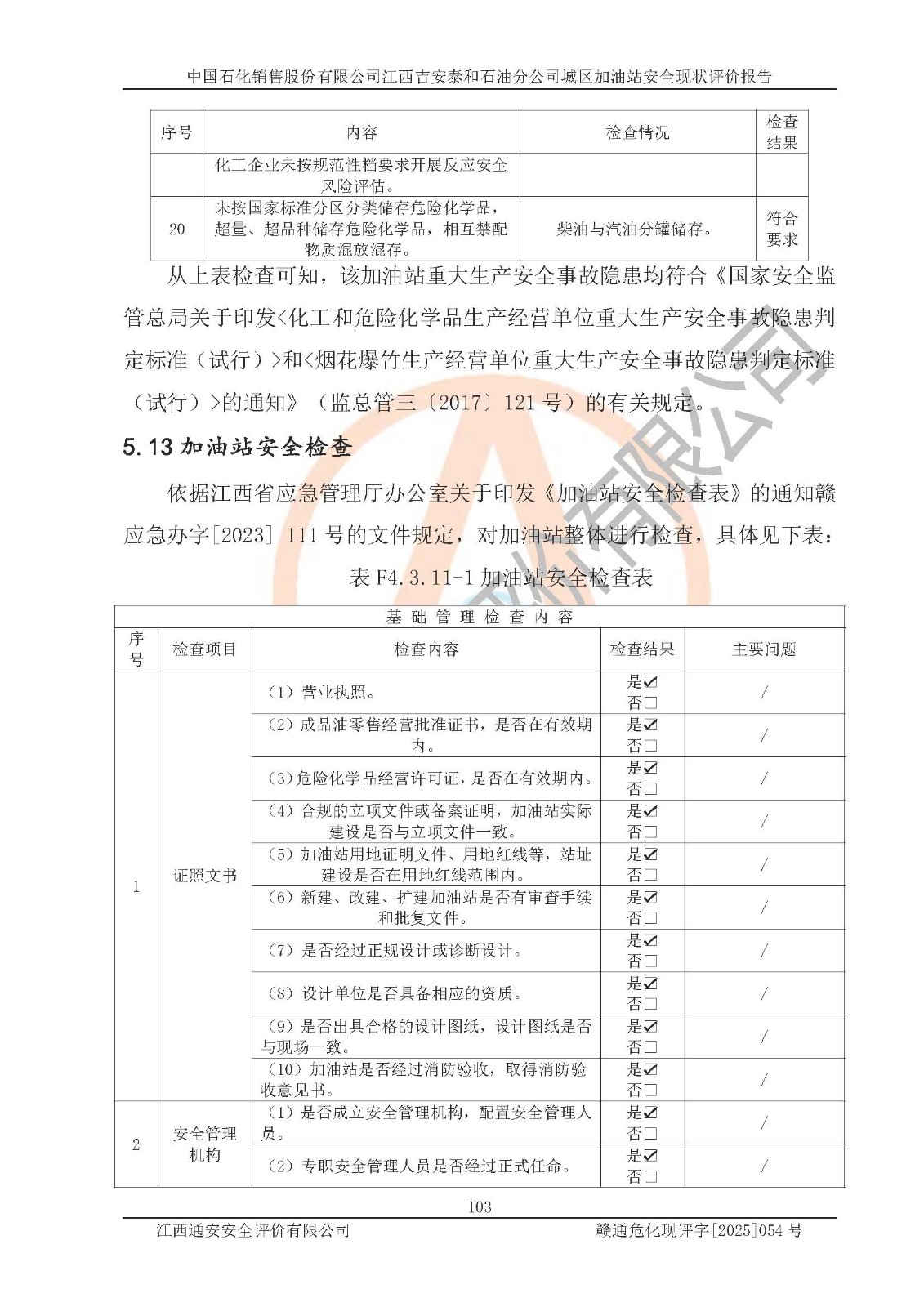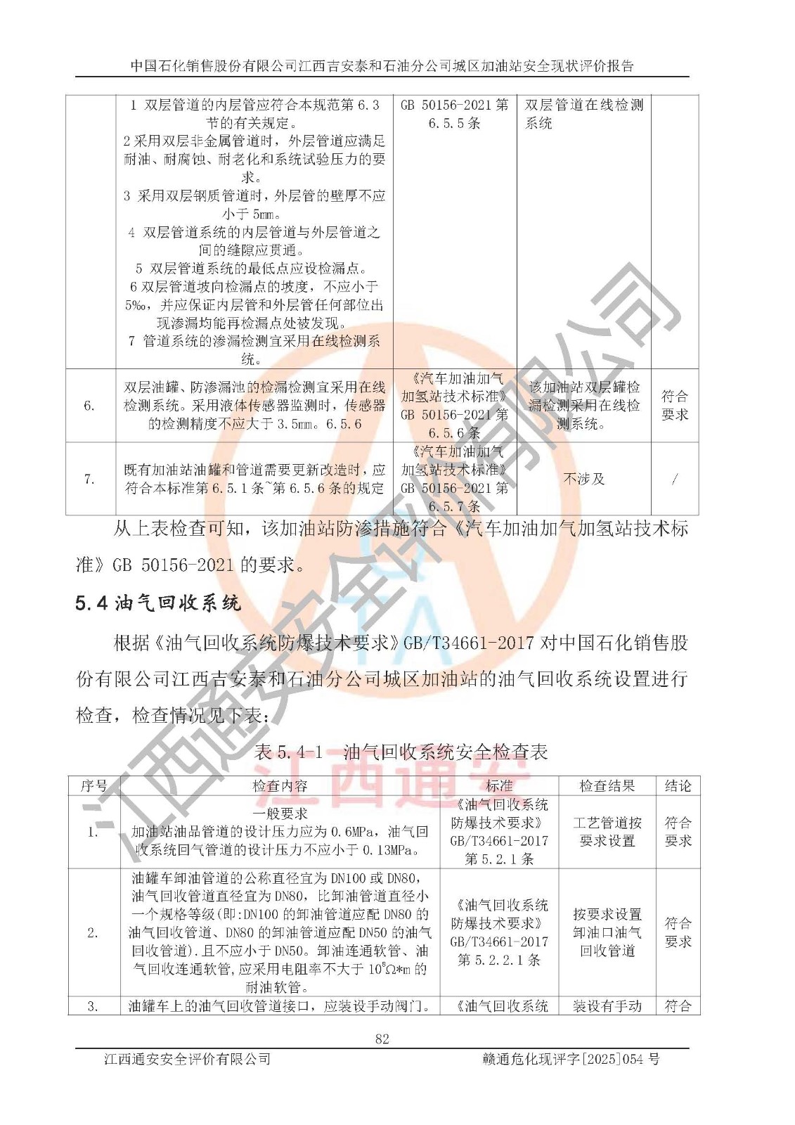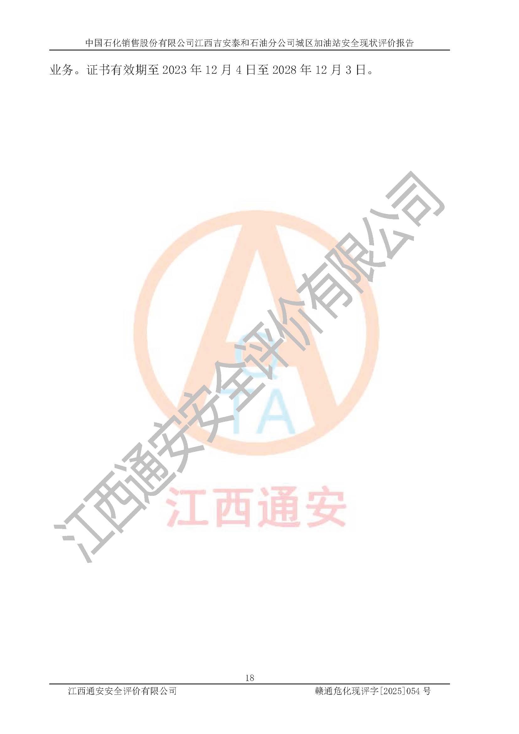 項目名稱 | 中國石化銷售股份有限公司江西吉安泰和石油分公司城區(qū)加油站 安全現(xiàn)狀評價報告 | ||||