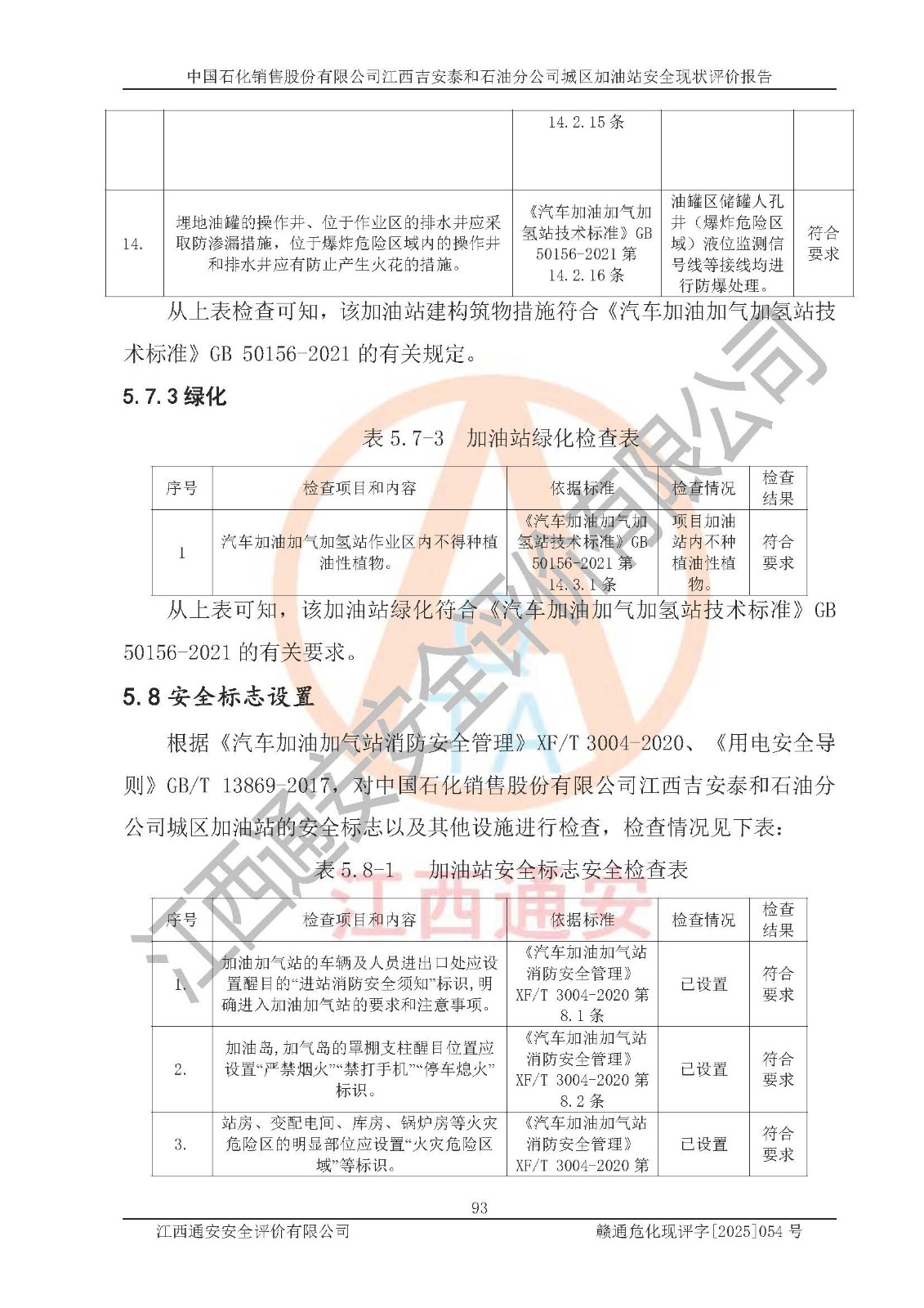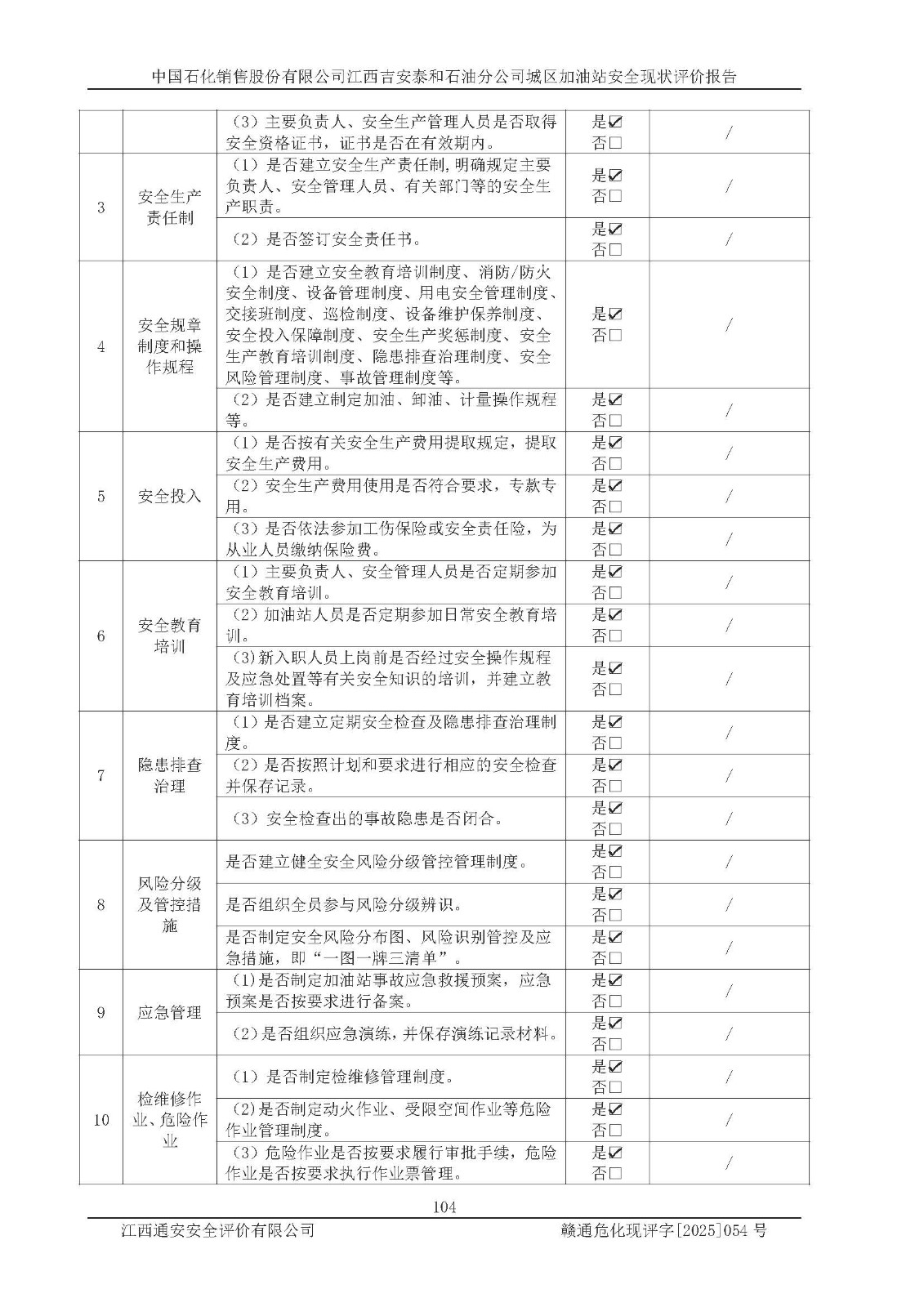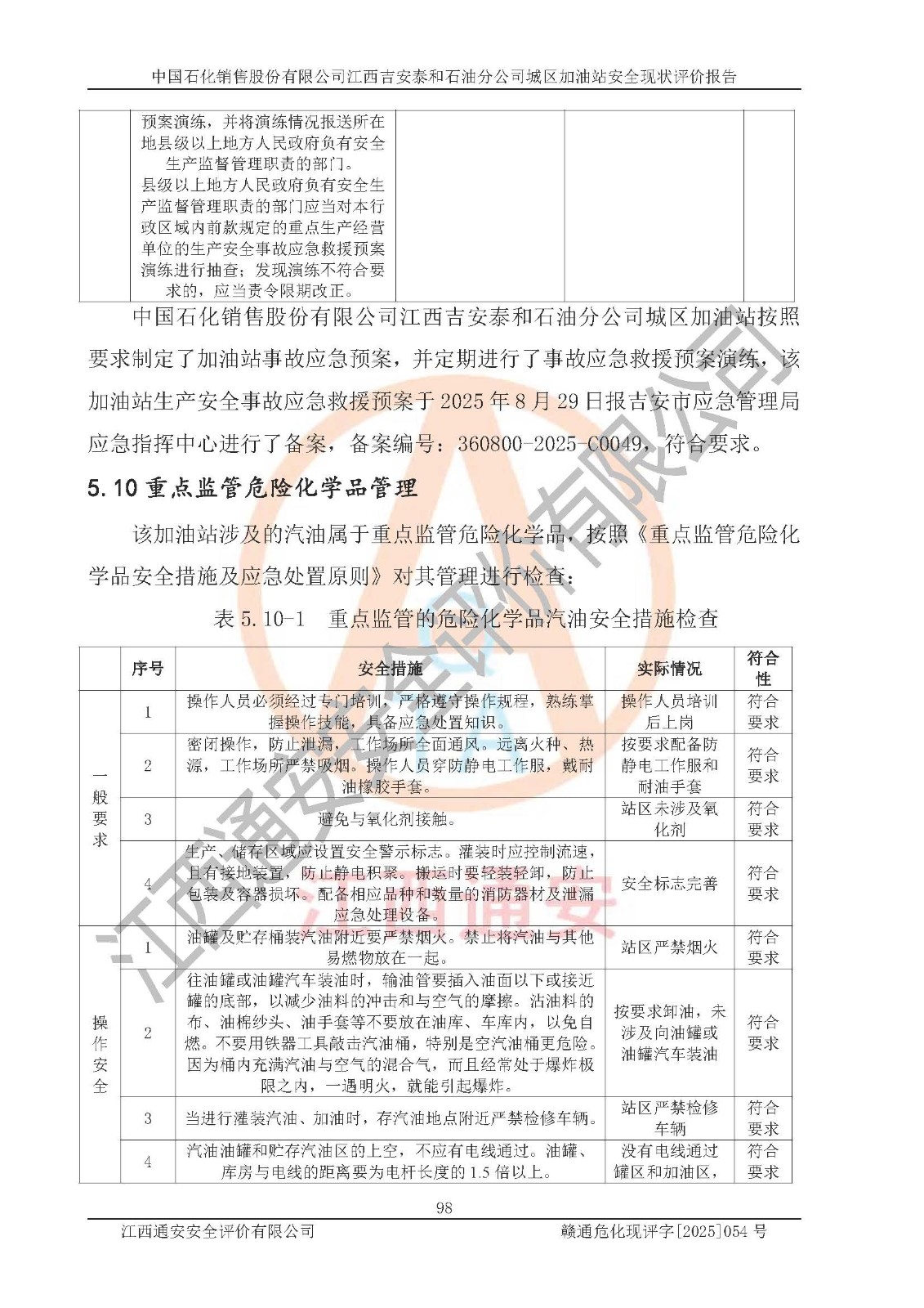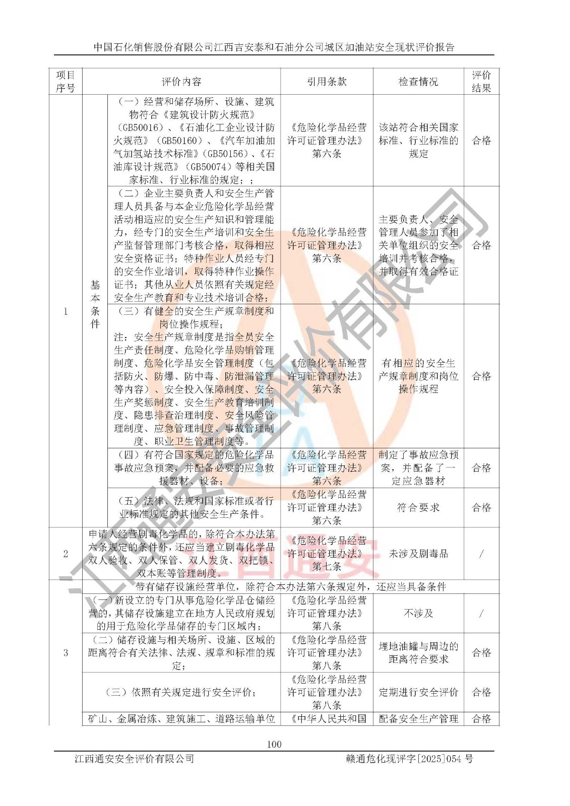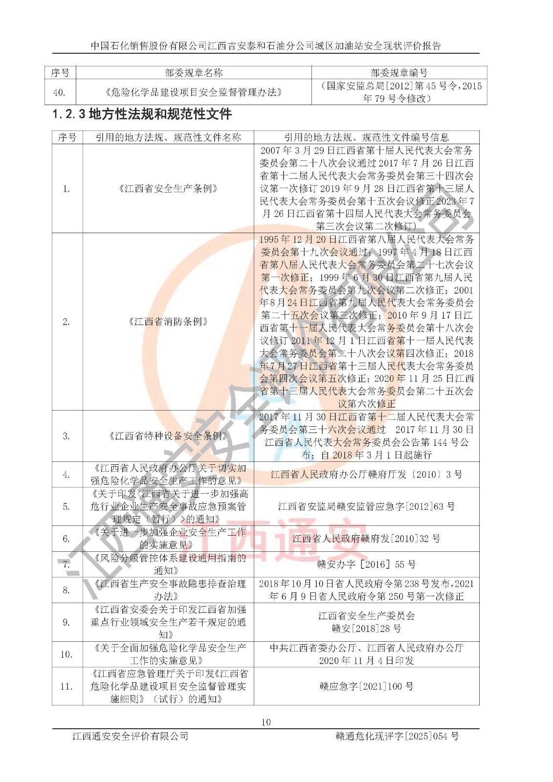 項目名稱 | 中國石化銷售股份有限公司江西吉安泰和石油分公司城區(qū)加油站 安全現(xiàn)狀評價報告 | ||||