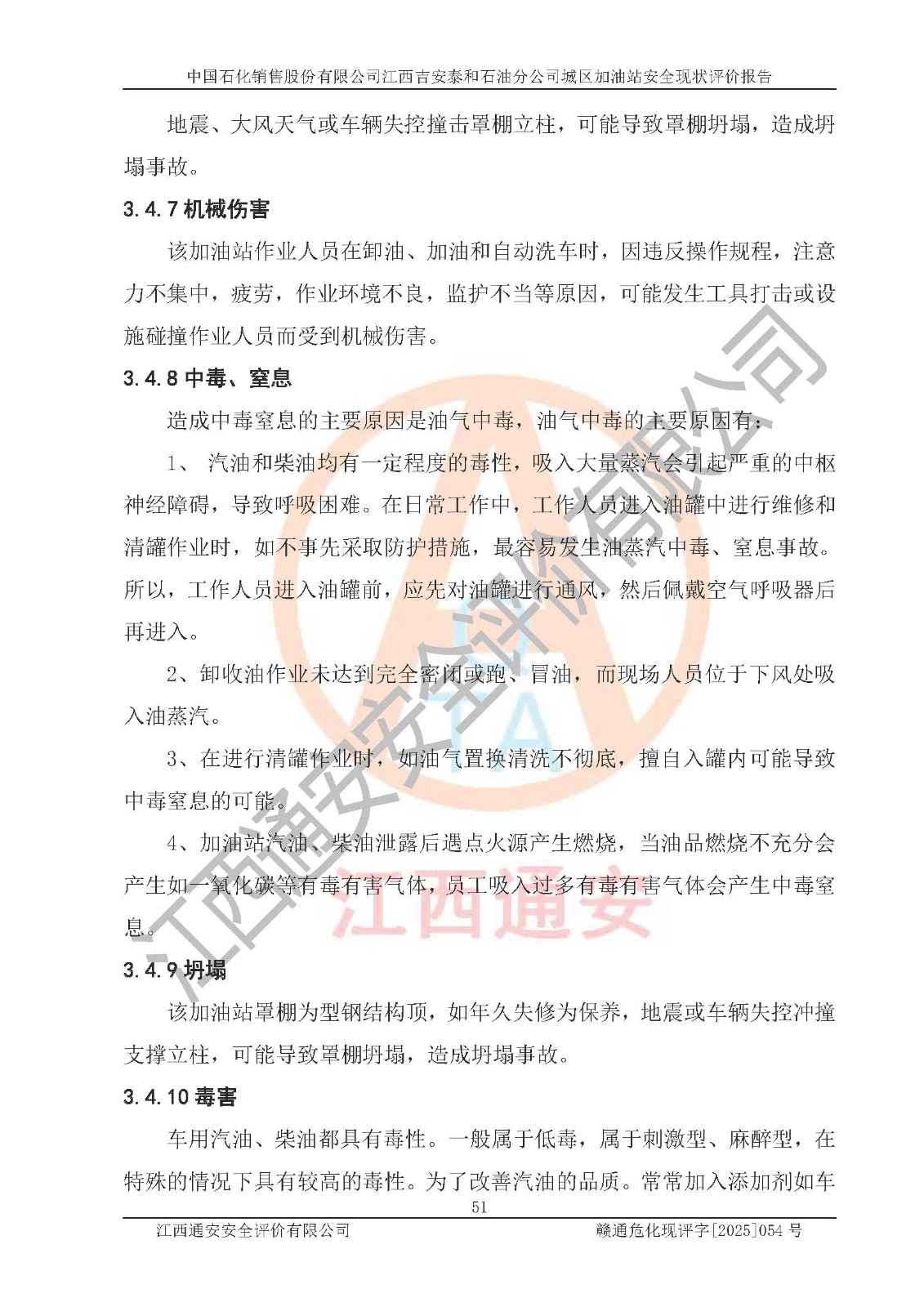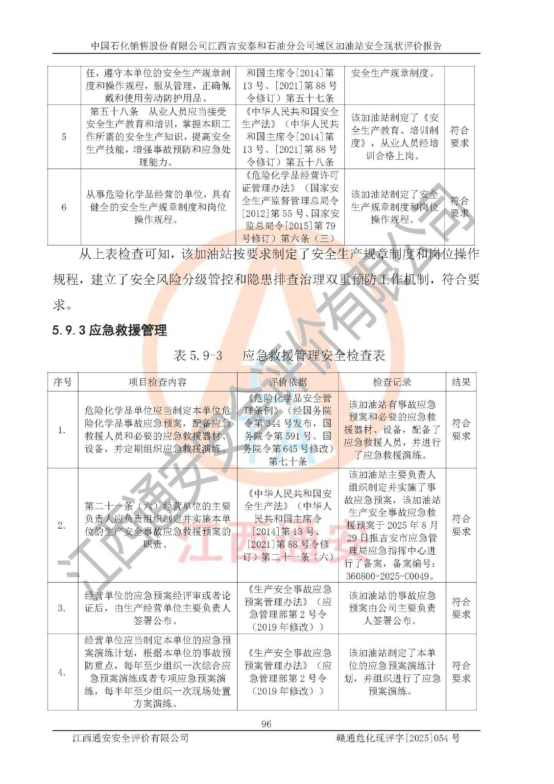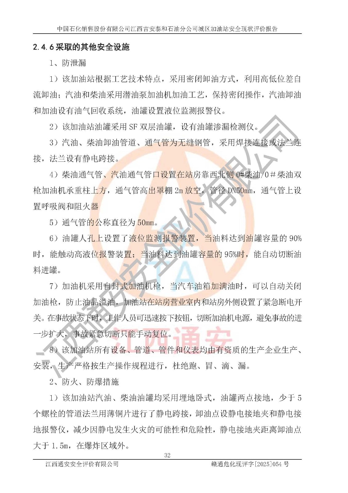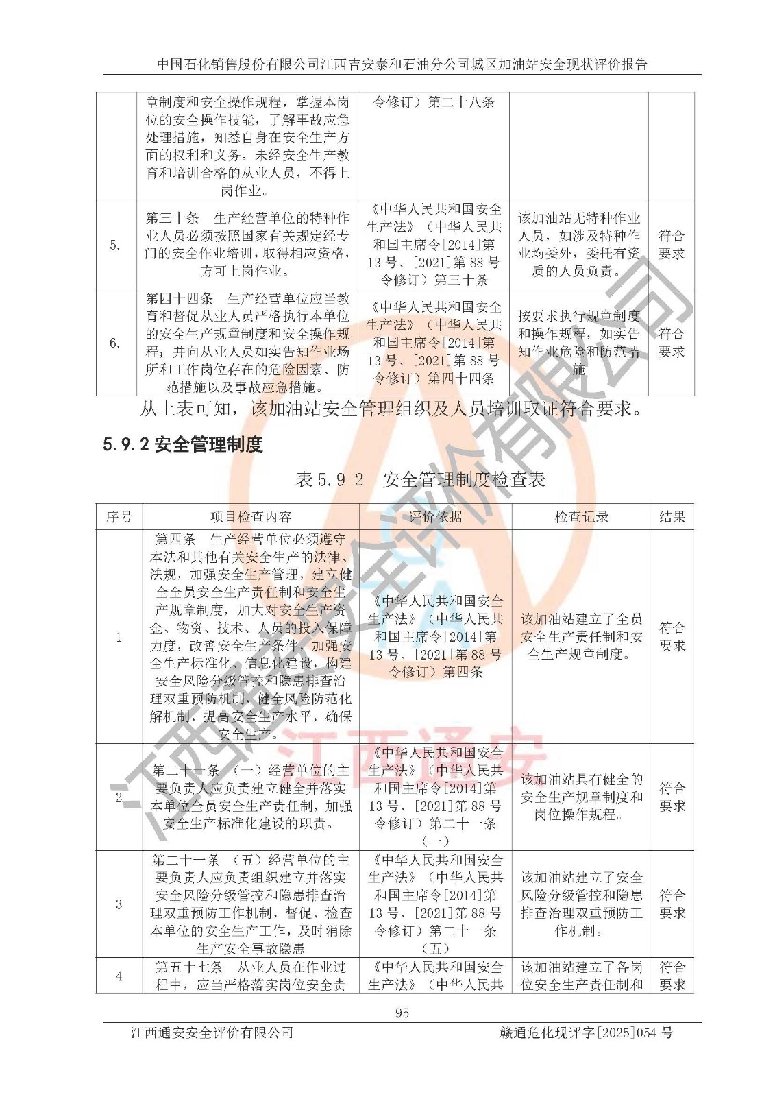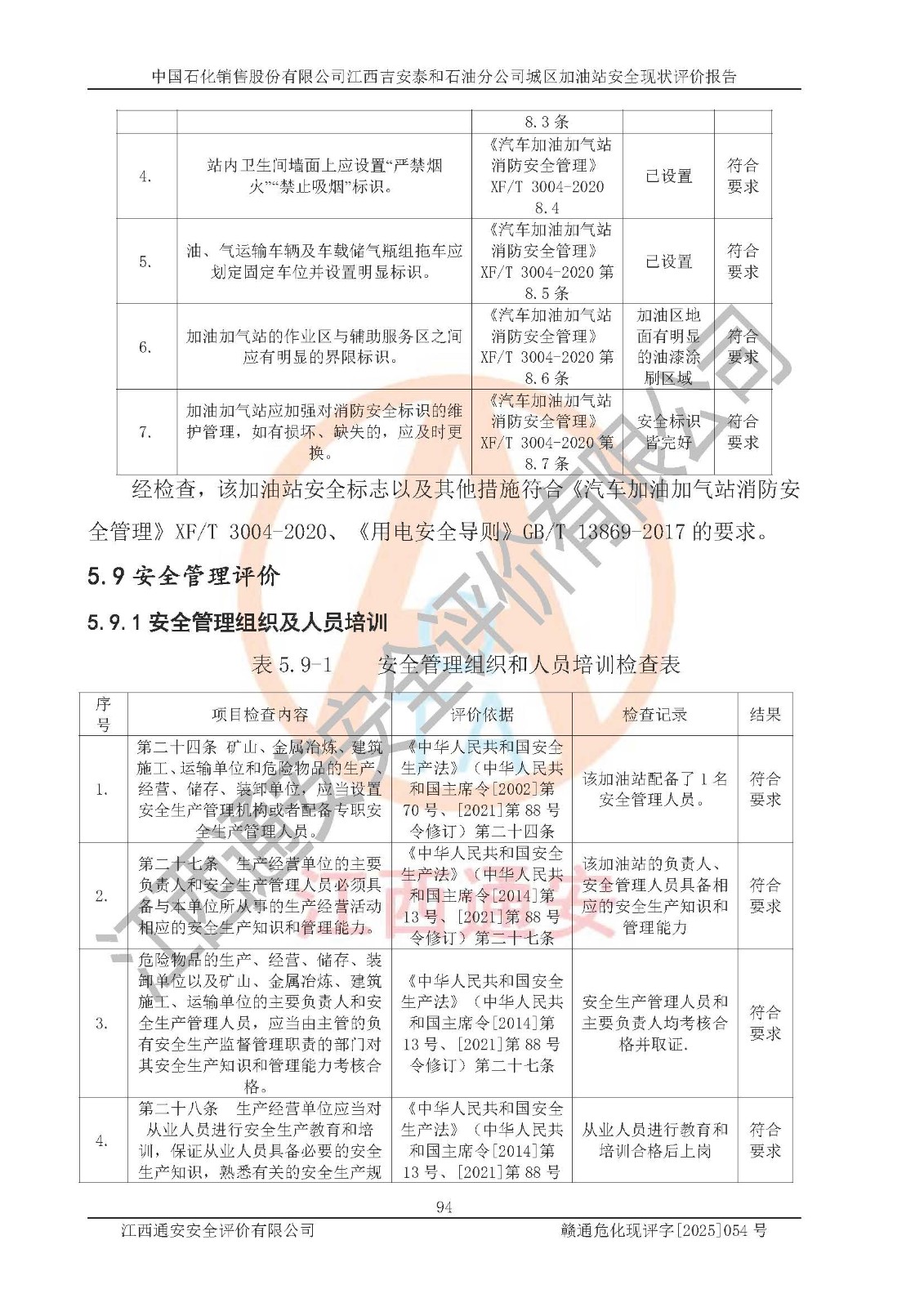 項目名稱 | 中國石化銷售股份有限公司江西吉安泰和石油分公司城區(qū)加油站 安全現(xiàn)狀評價報告 | ||||