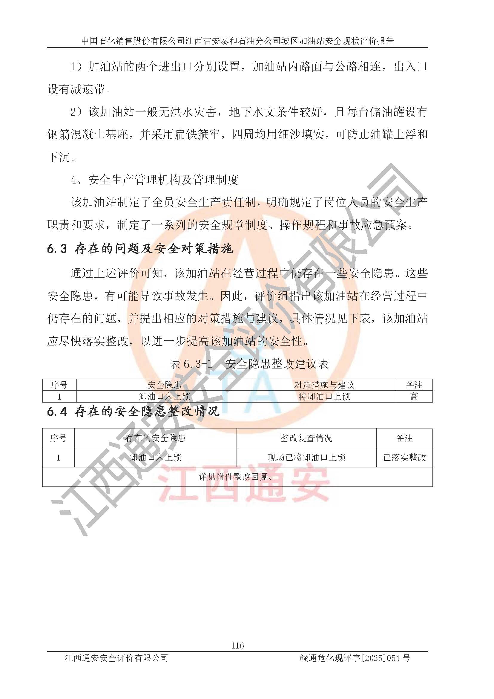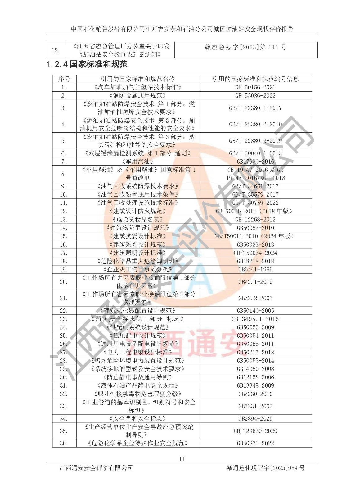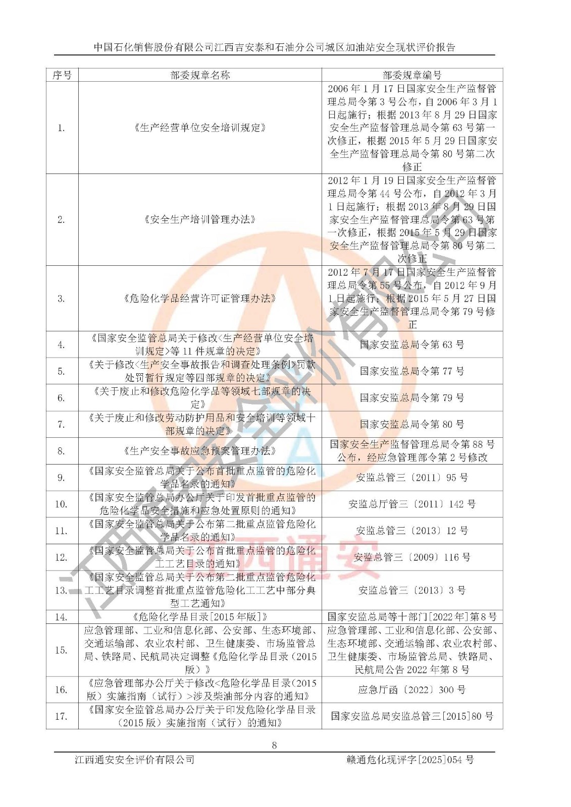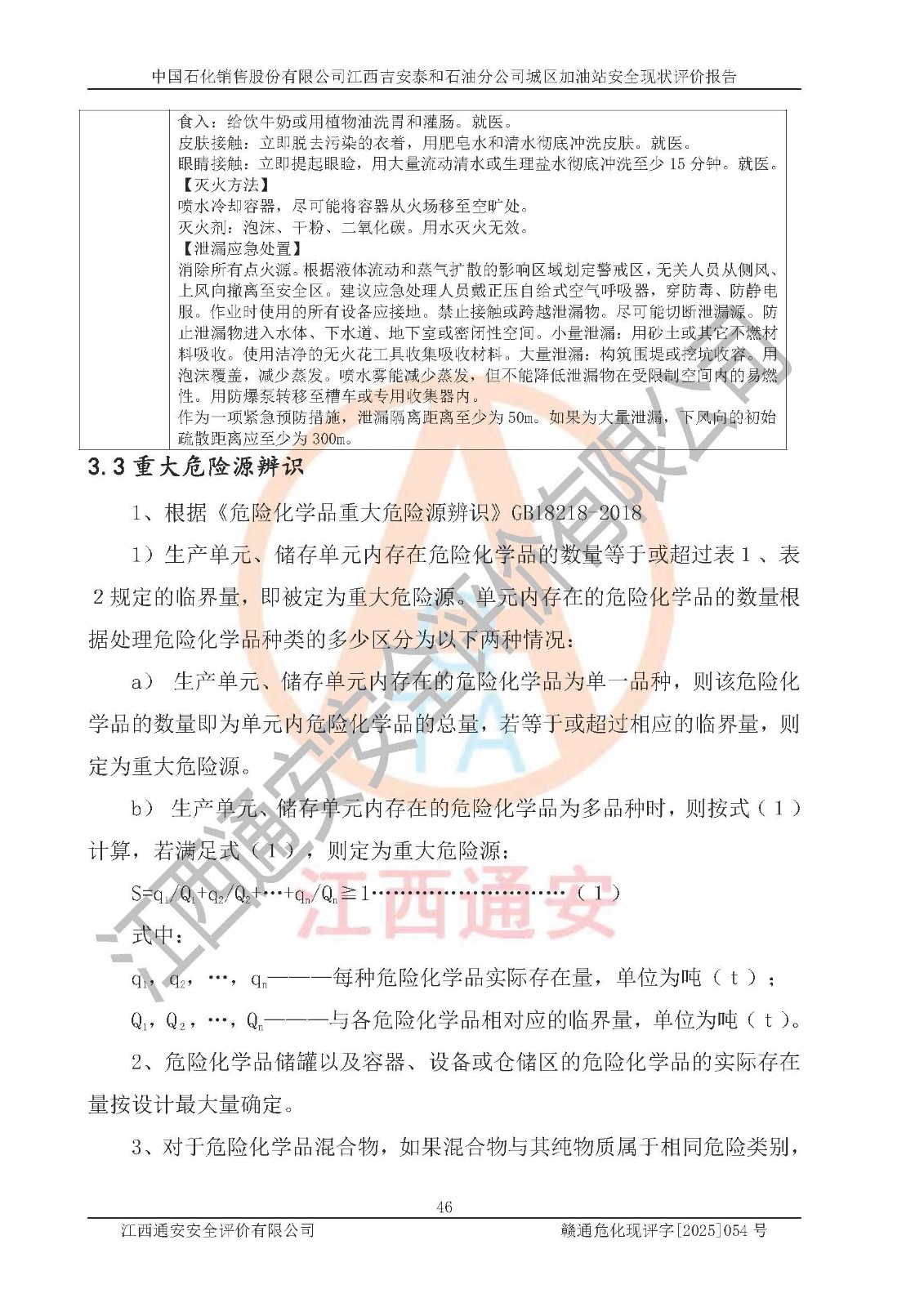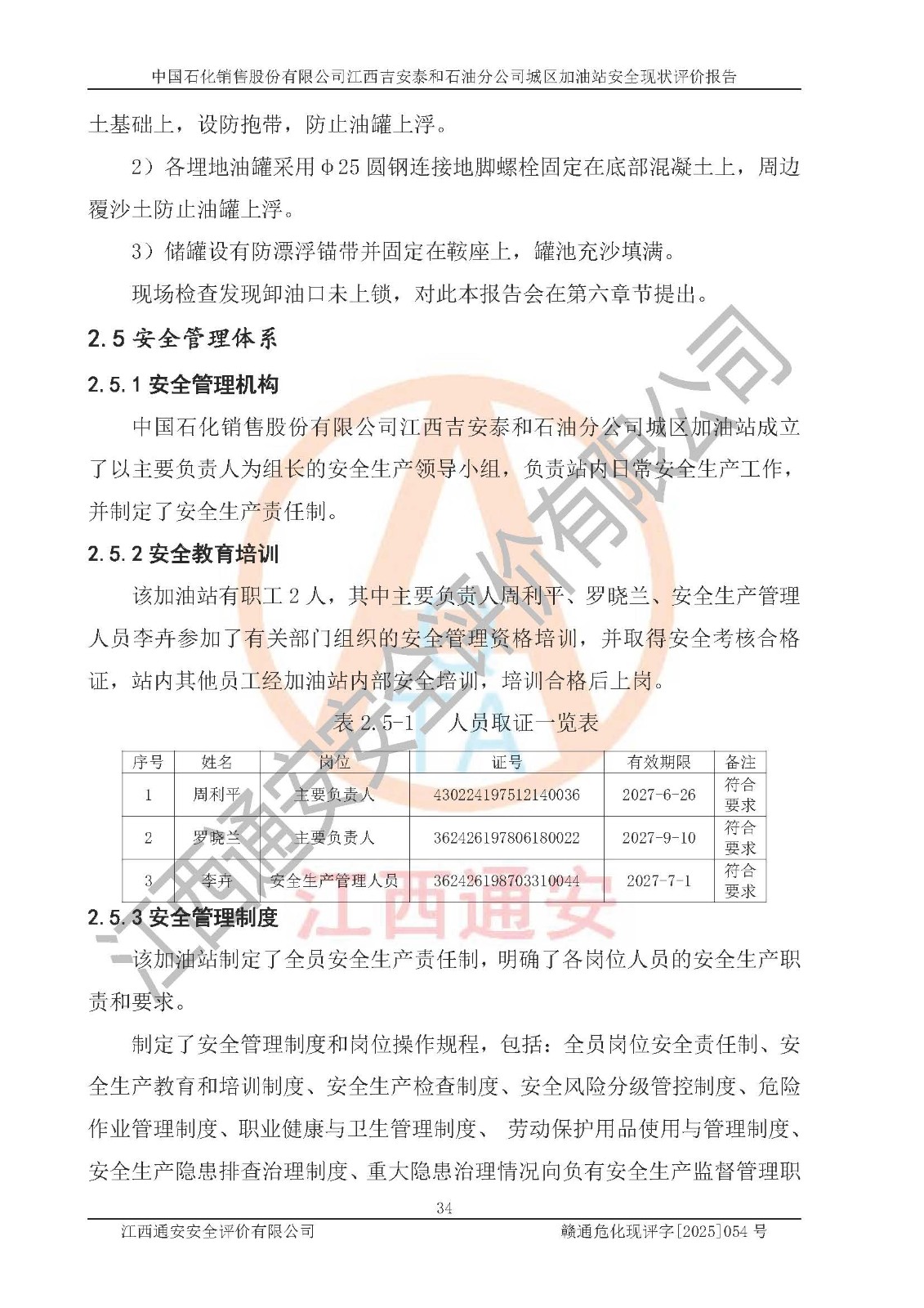 項目名稱 | 中國石化銷售股份有限公司江西吉安泰和石油分公司城區(qū)加油站 安全現(xiàn)狀評價報告 | ||||