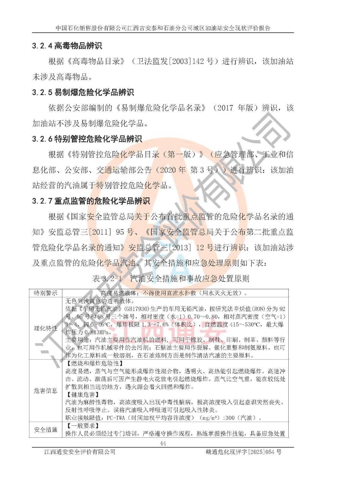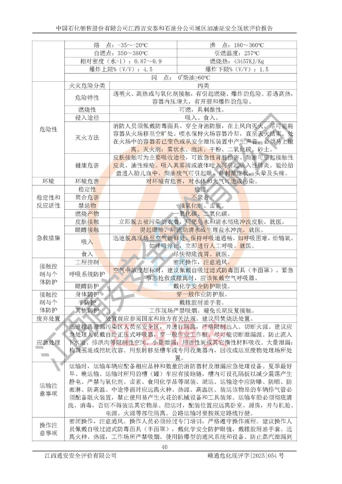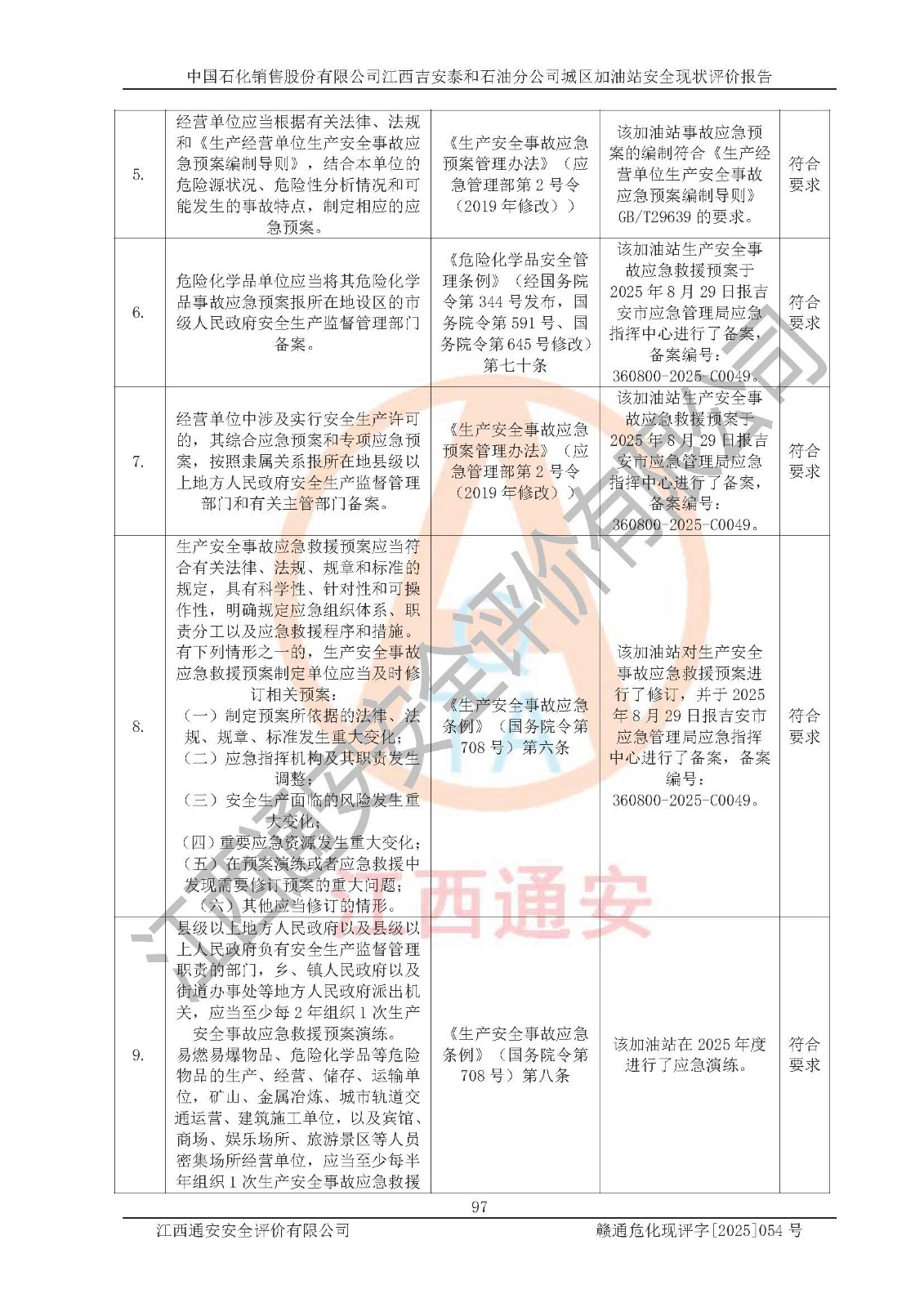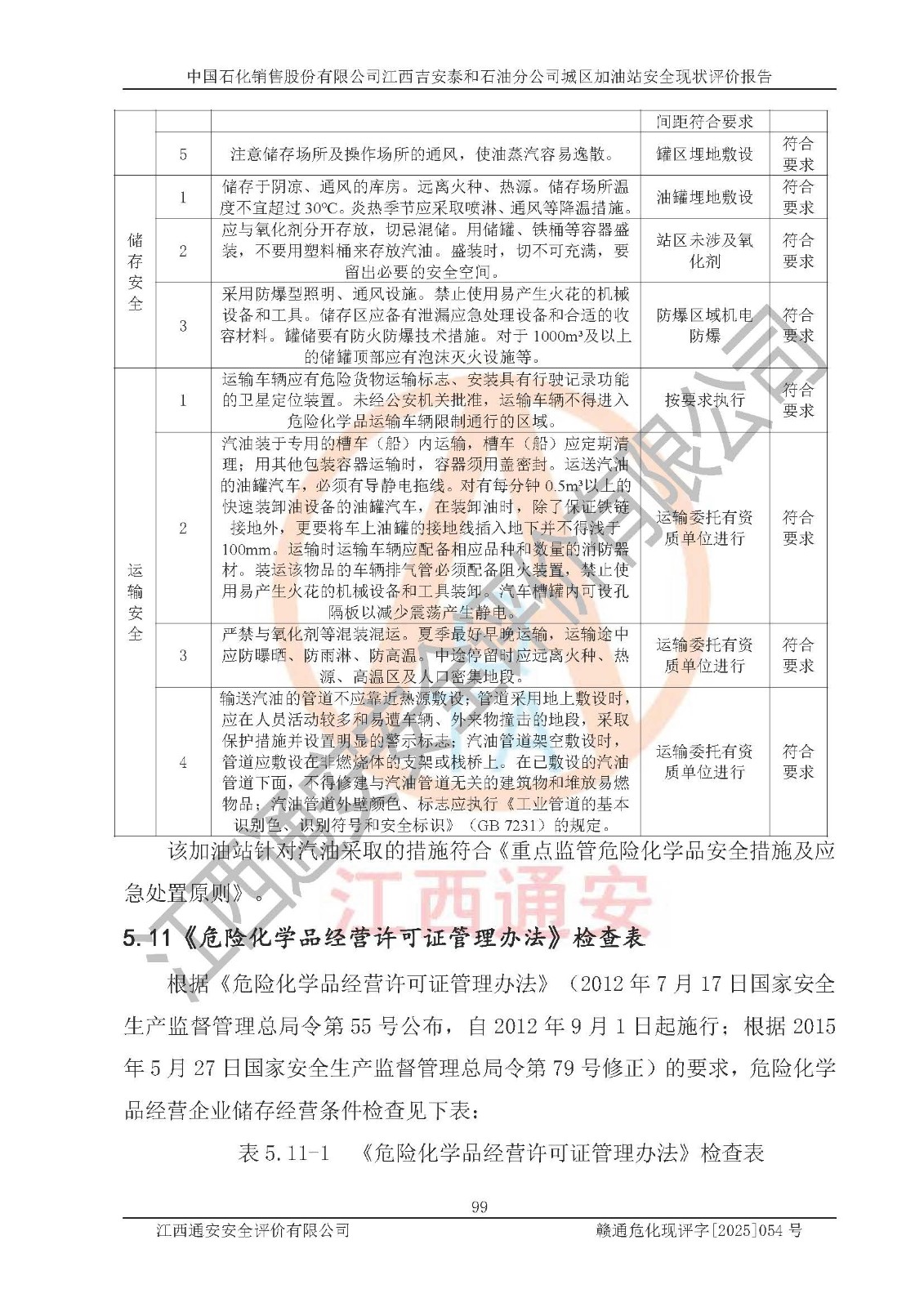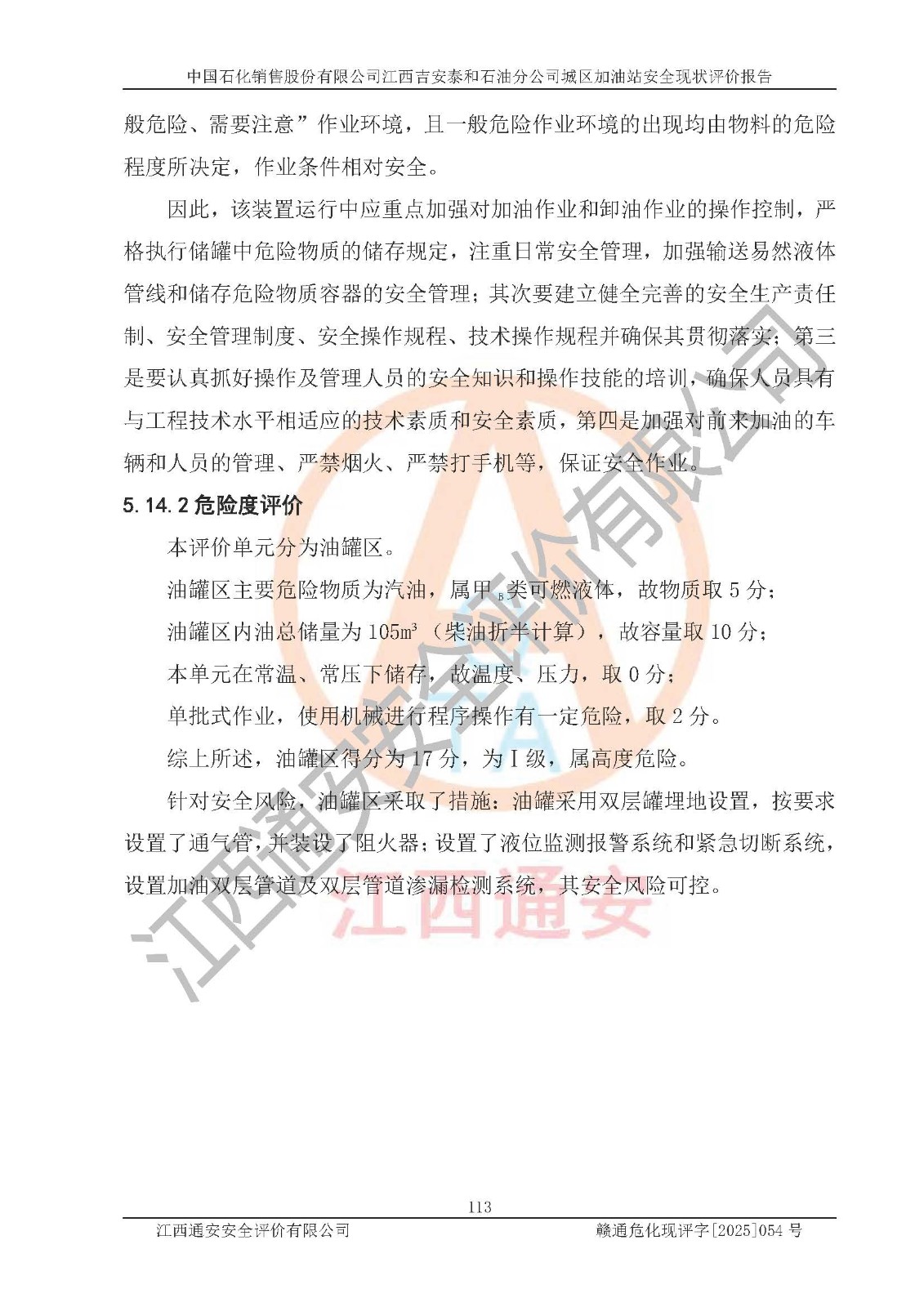 項目名稱 | 中國石化銷售股份有限公司江西吉安泰和石油分公司城區(qū)加油站 安全現(xiàn)狀評價報告 | ||||