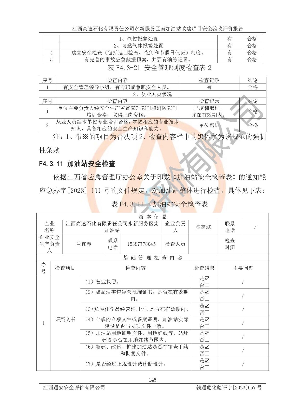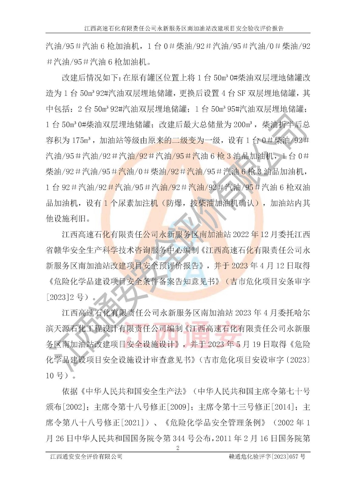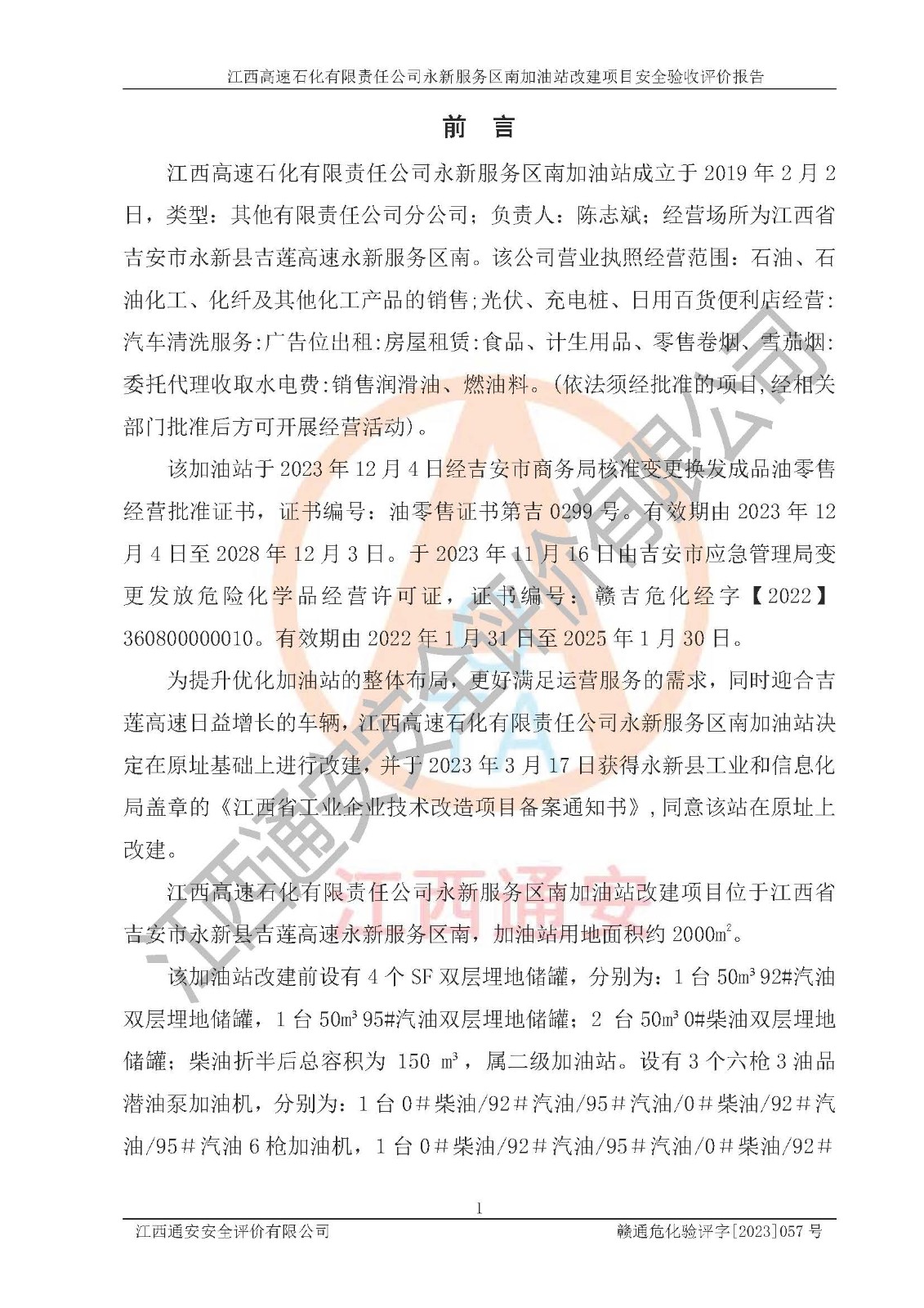 項目名稱 | 江西高速石化有限責(zé)任公司永新服務(wù)區(qū)南加油站改建項目安全驗收評價報告 | ||||