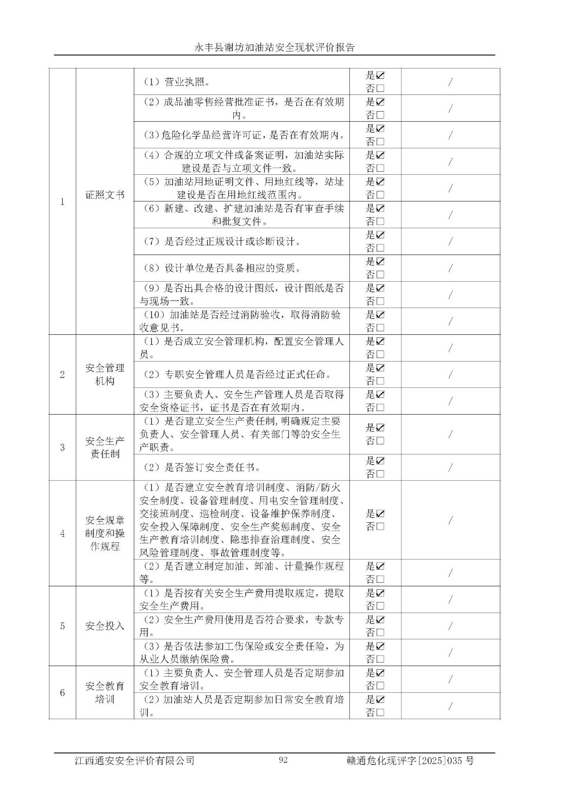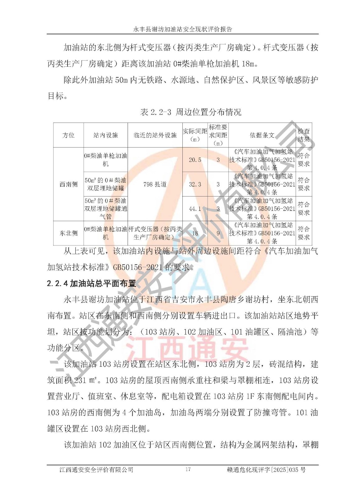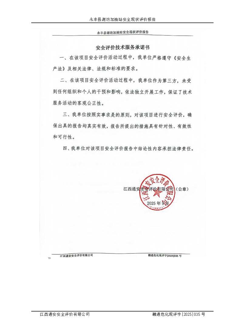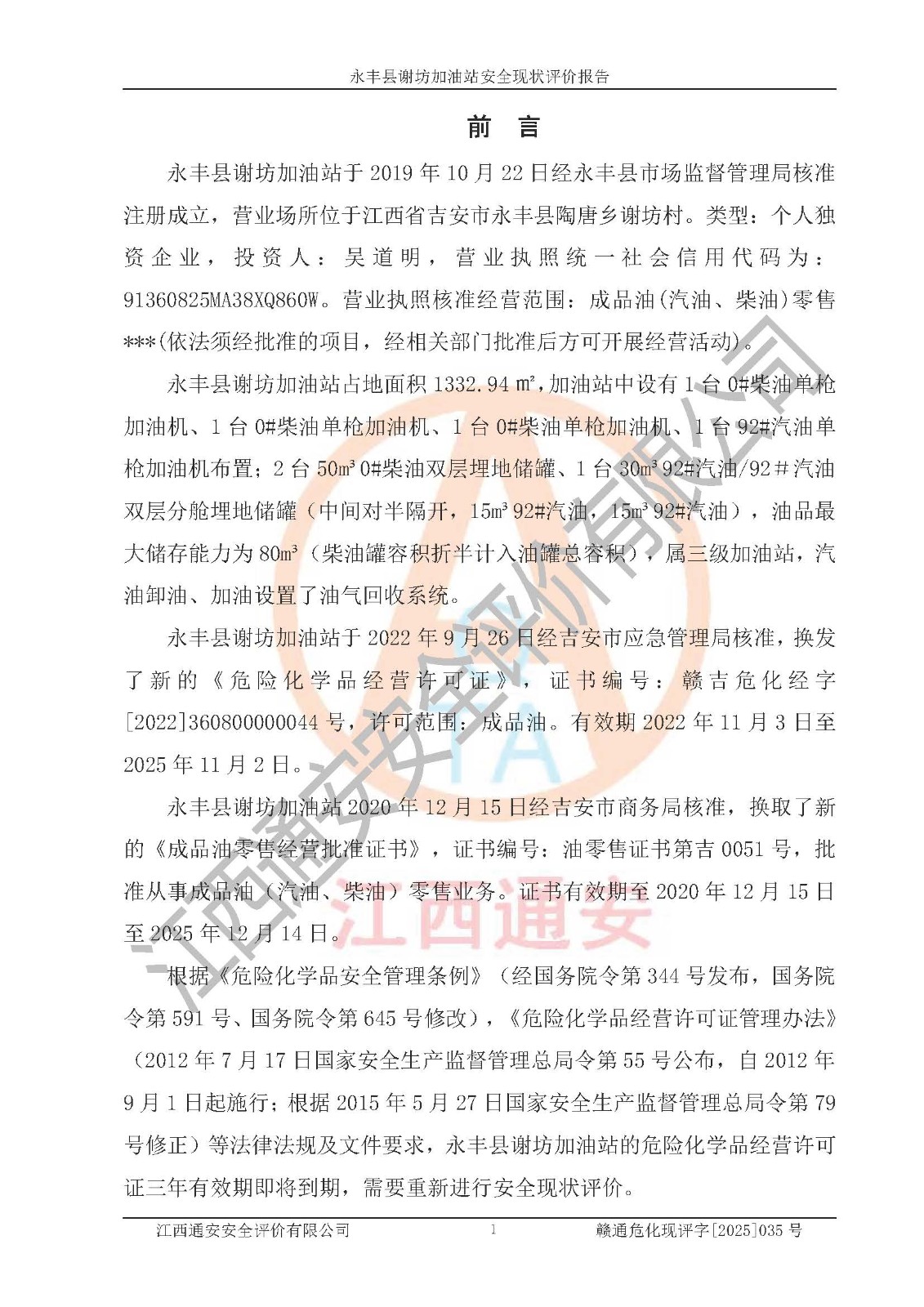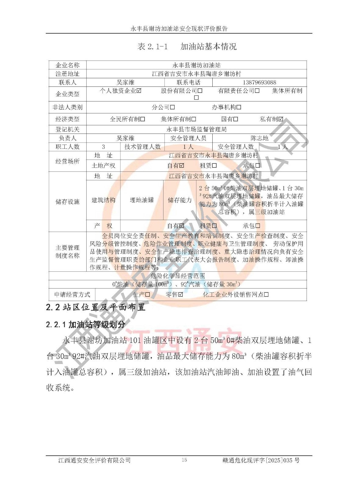 項(xiàng)目名稱 | 永豐縣謝坊加油站安全現(xiàn)狀評價(jià)報(bào)告 | ||||