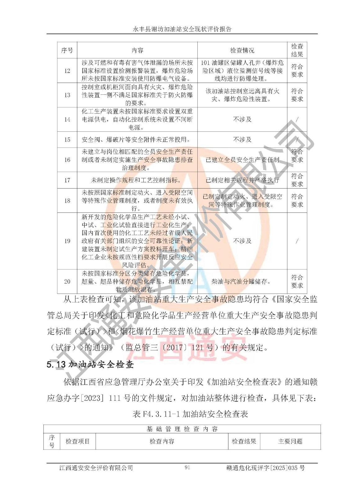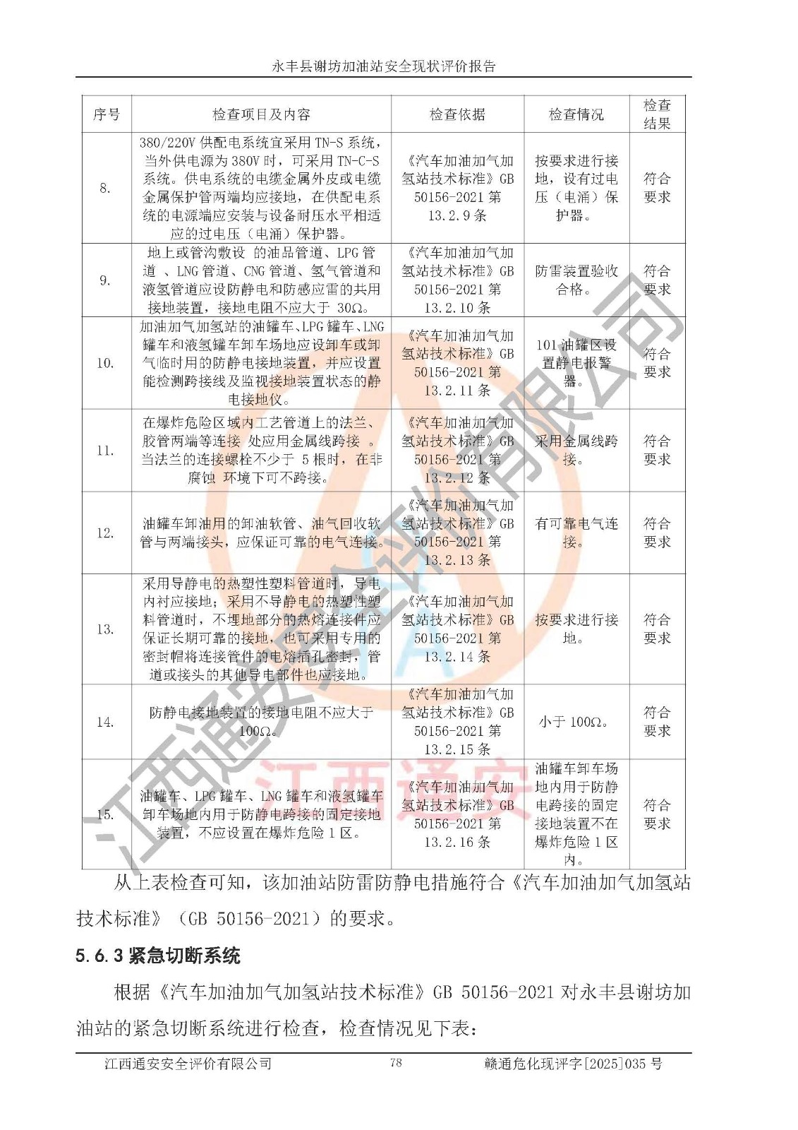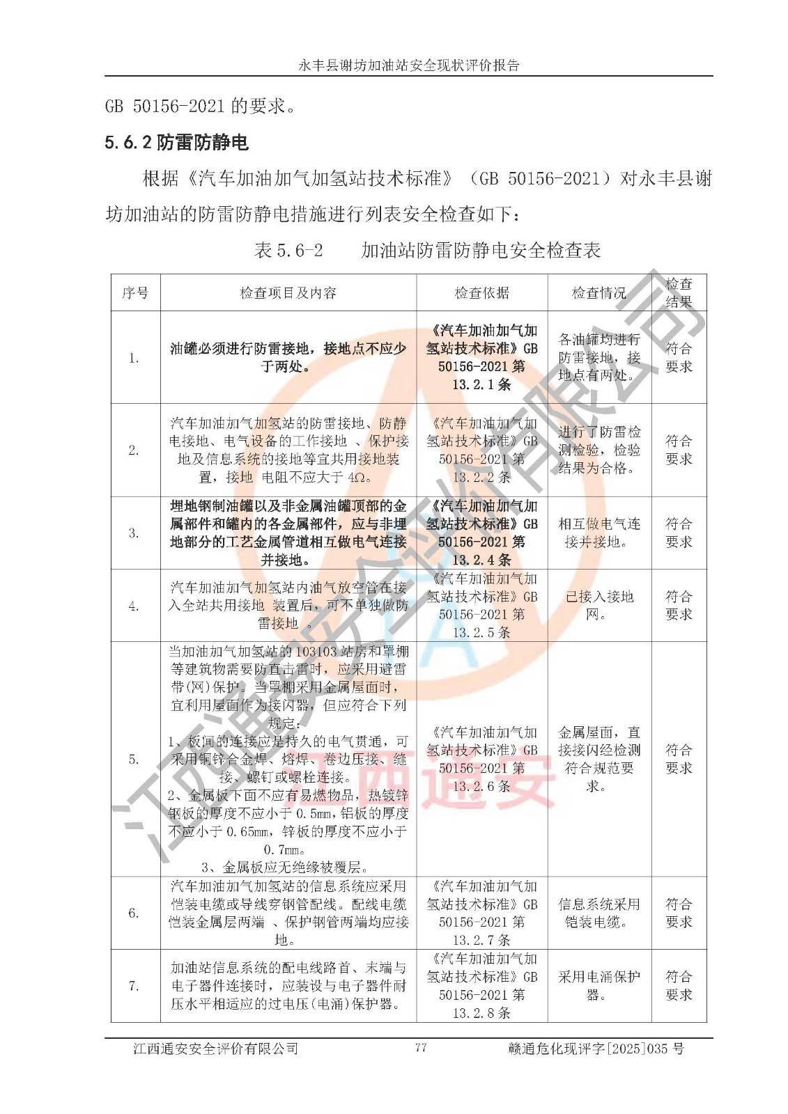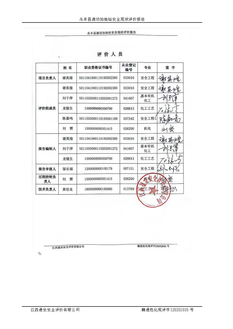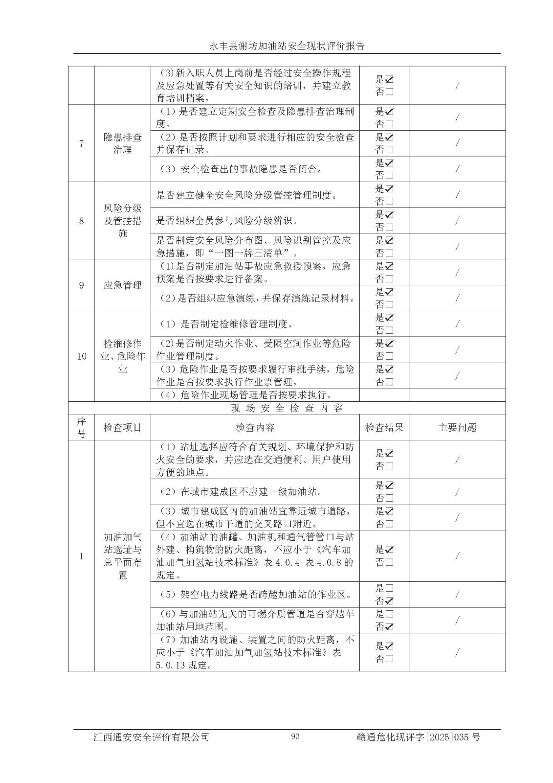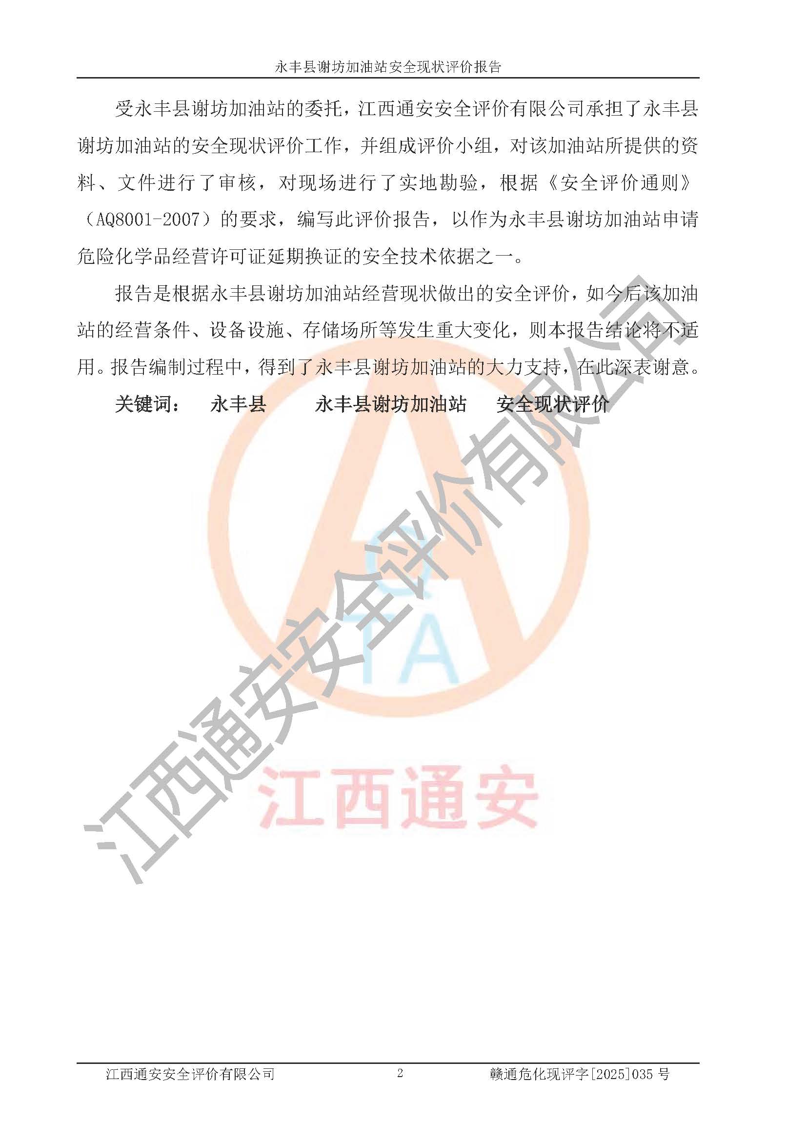 項(xiàng)目名稱 | 永豐縣謝坊加油站安全現(xiàn)狀評價(jià)報(bào)告 | ||||