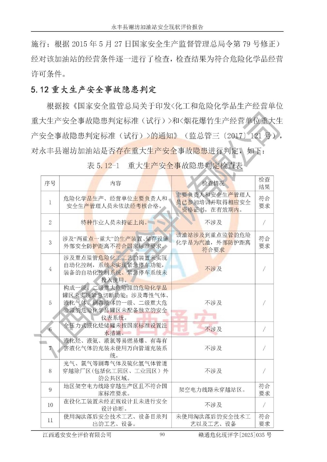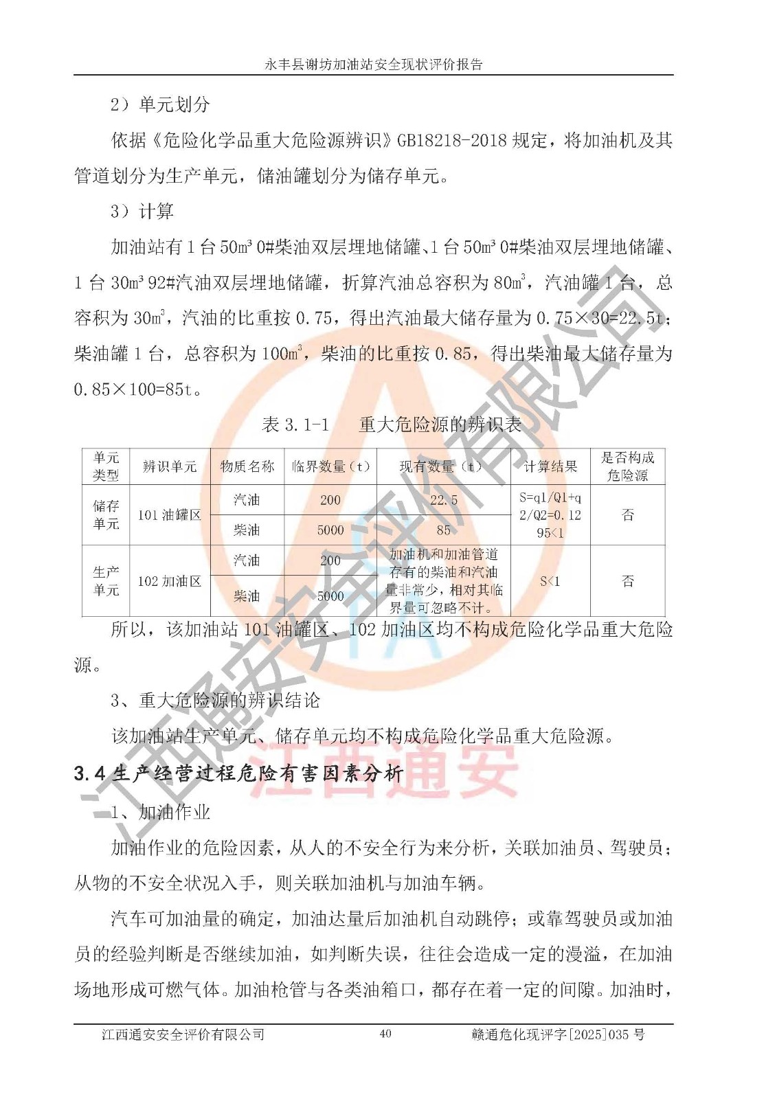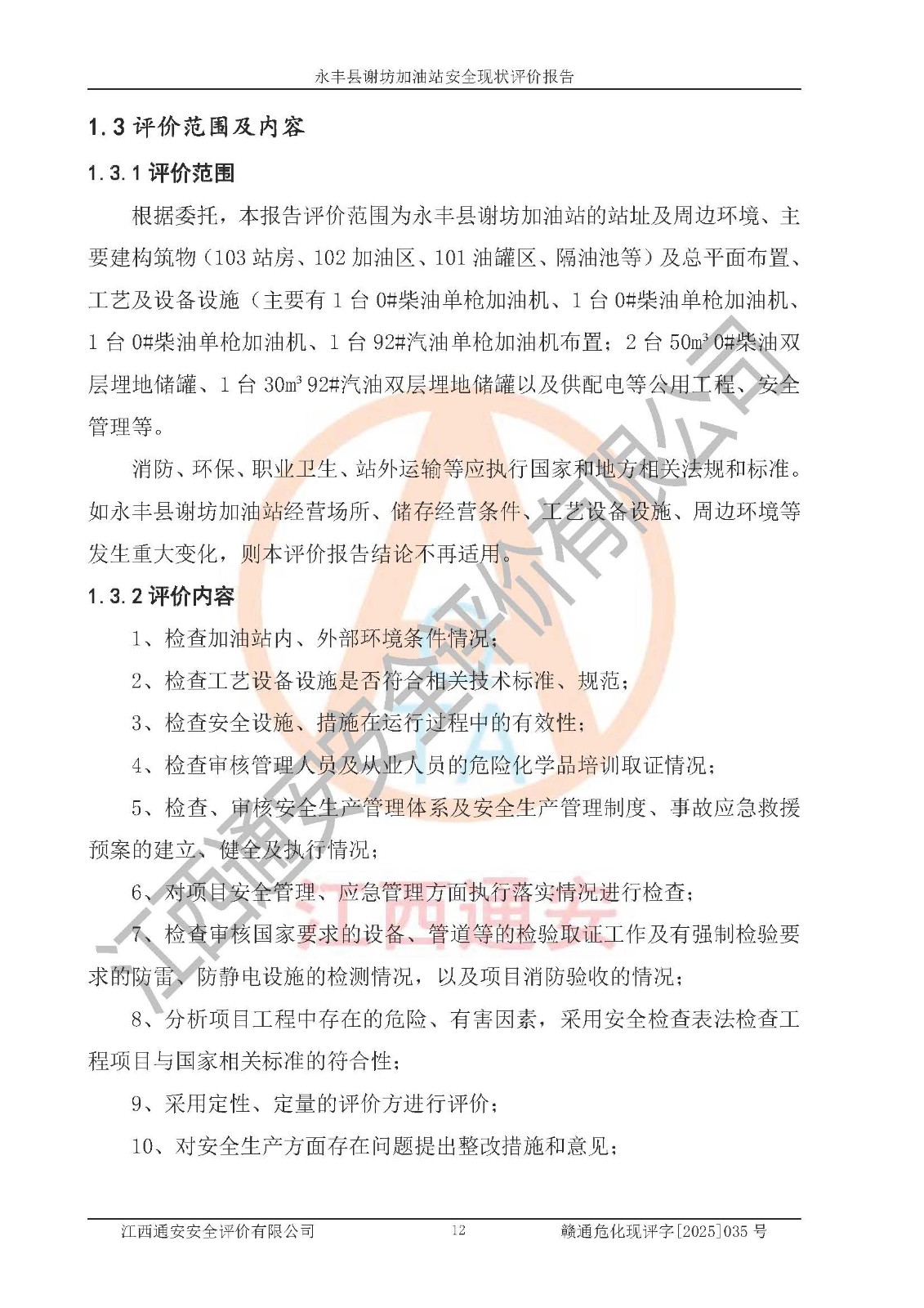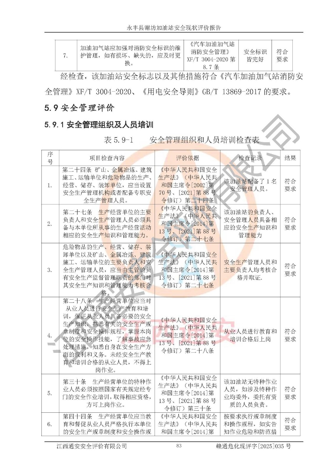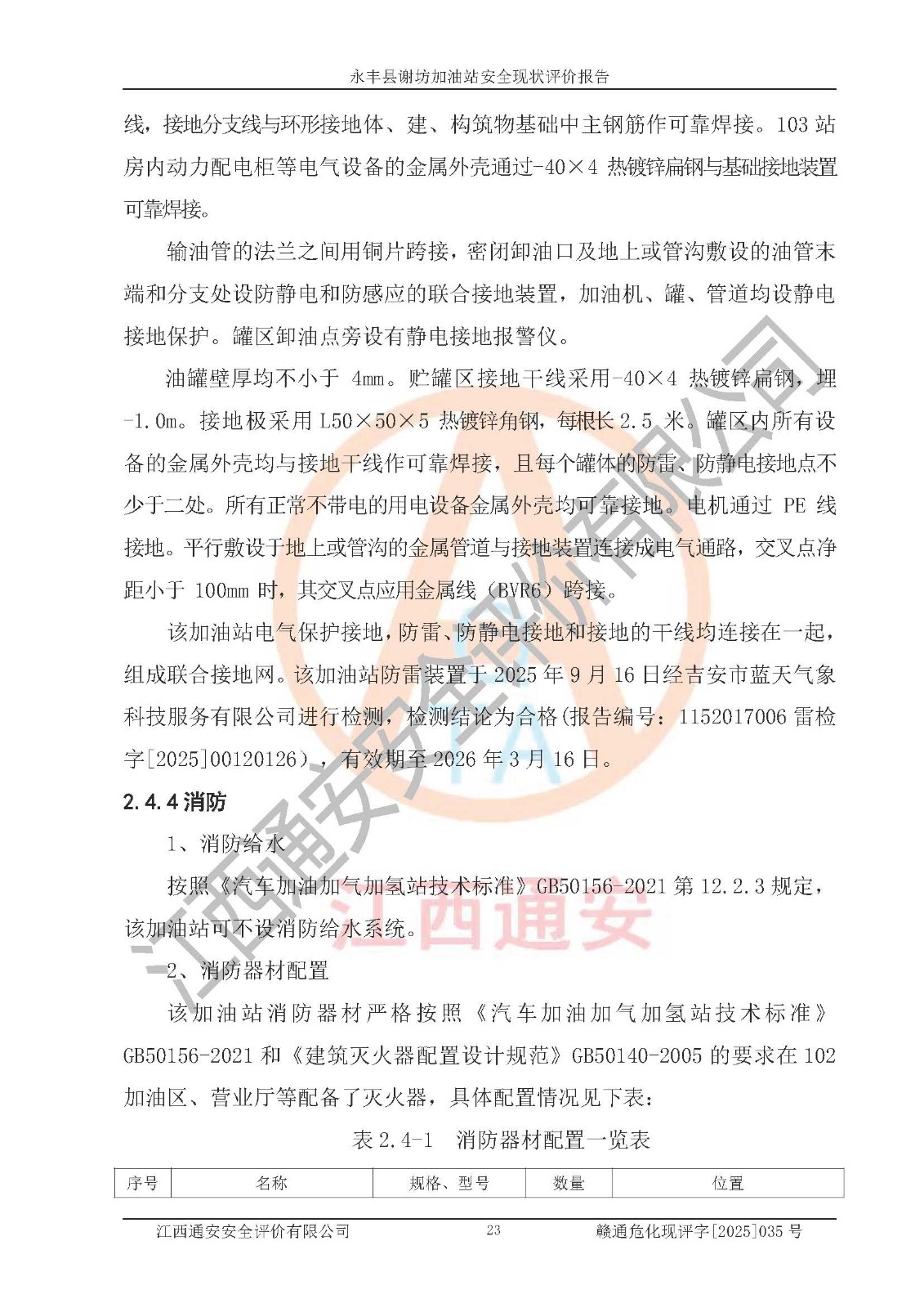 項(xiàng)目名稱 | 永豐縣謝坊加油站安全現(xiàn)狀評價(jià)報(bào)告 | ||||