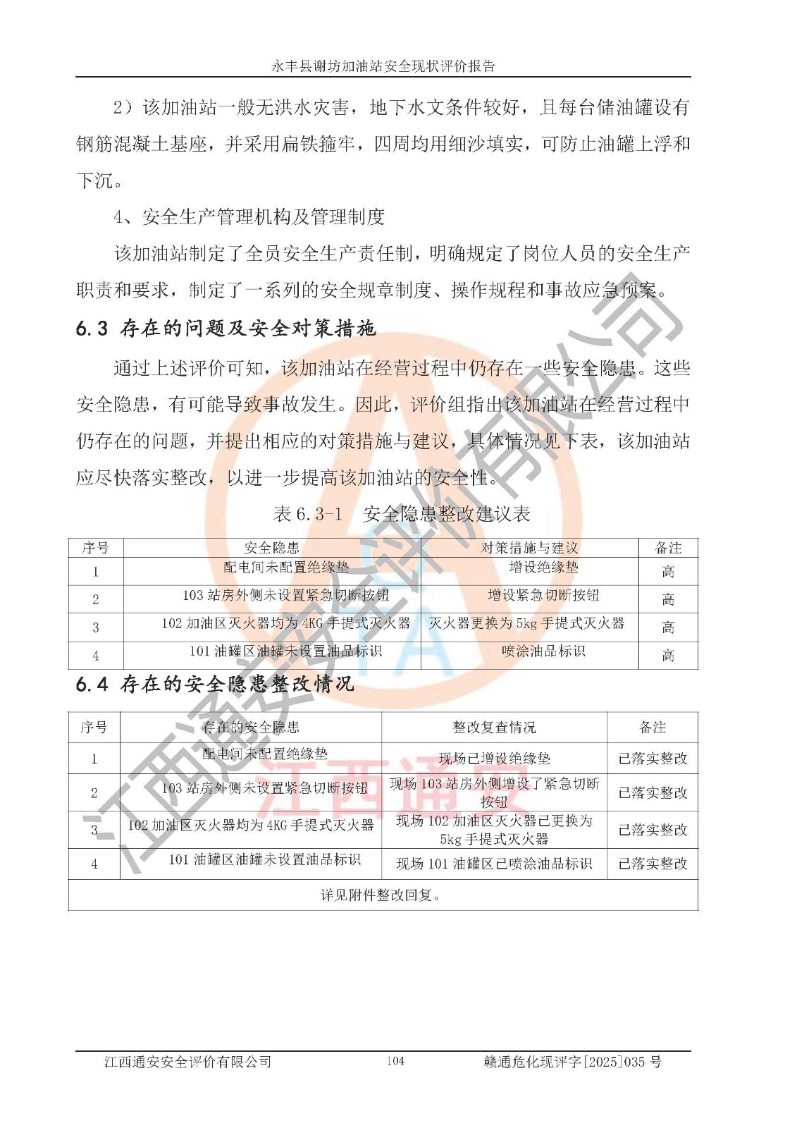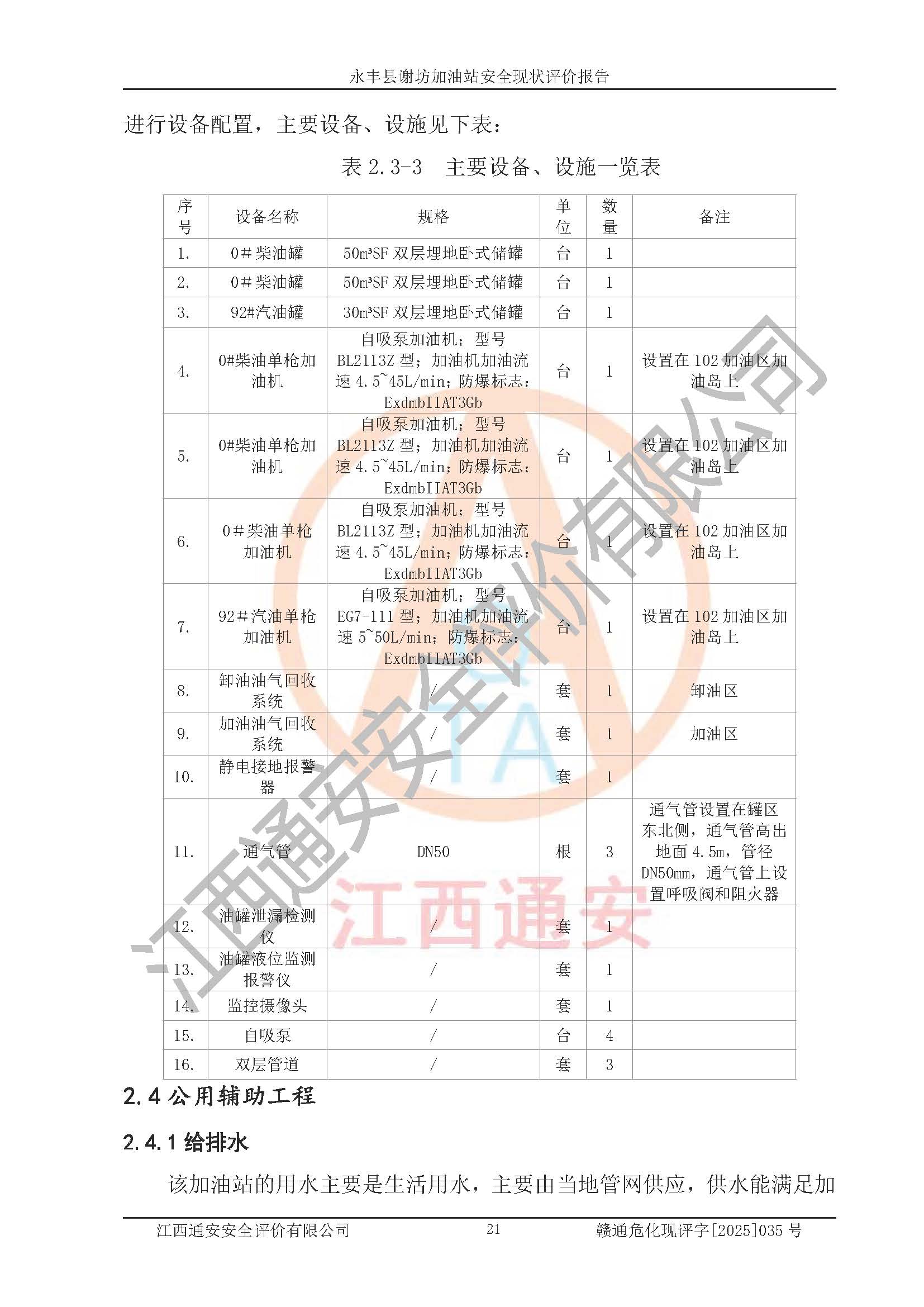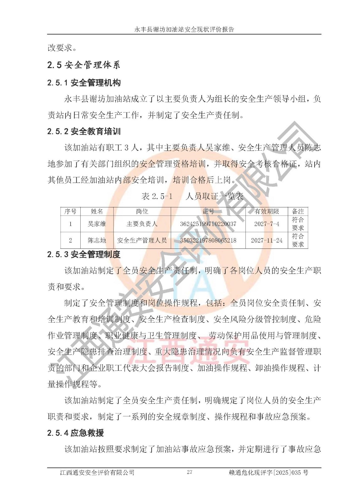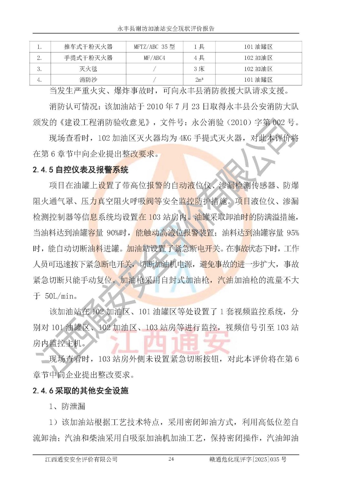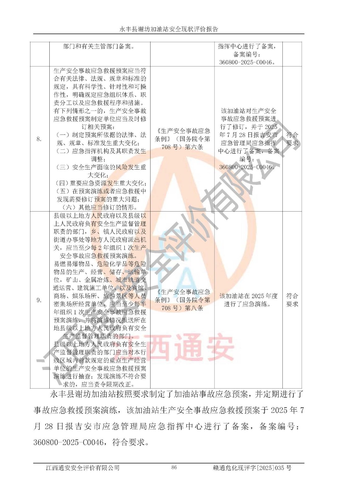 項(xiàng)目名稱 | 永豐縣謝坊加油站安全現(xiàn)狀評價(jià)報(bào)告 | ||||