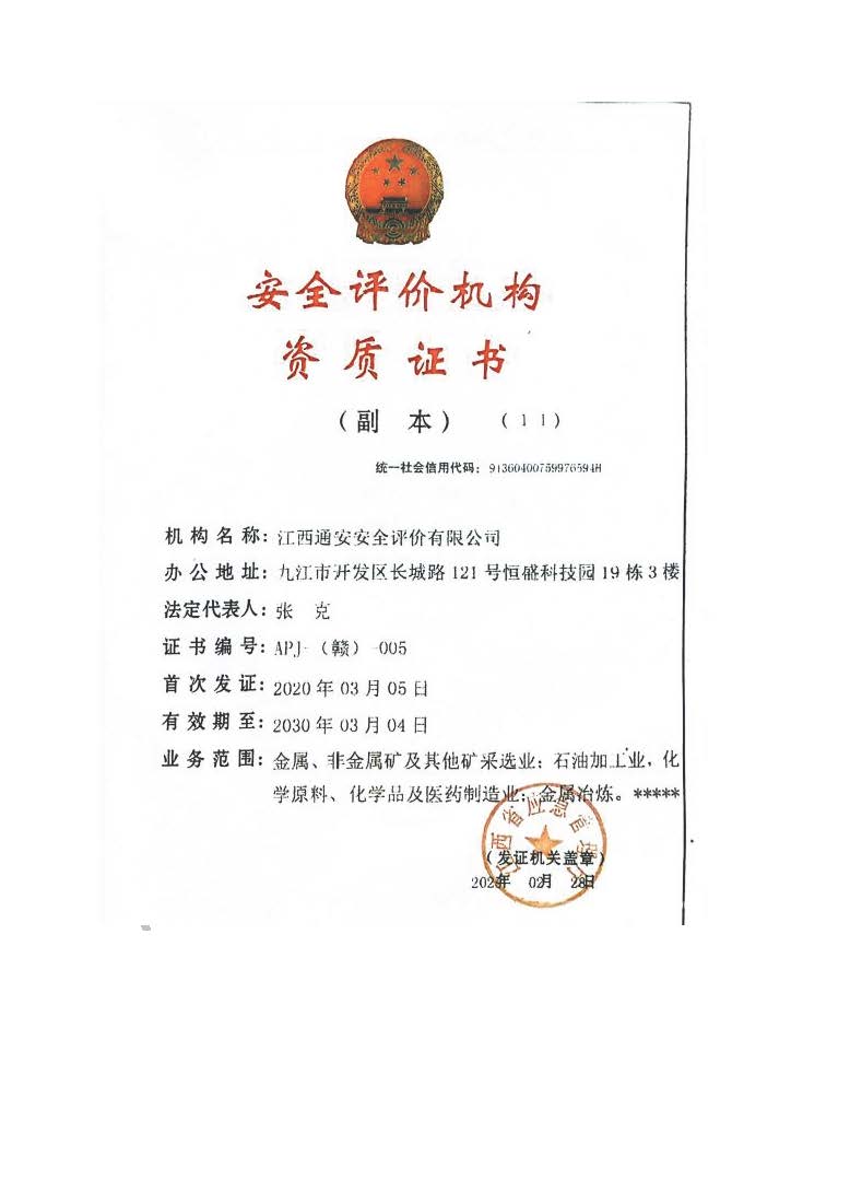 過程控制負(fù)責(zé)人 | 劉赟 | 參與評價(jià)安全評價(jià)師 | 謝英煌、龍鏡生、劉于萍、劉赟、 陳嘉鳴 | ||