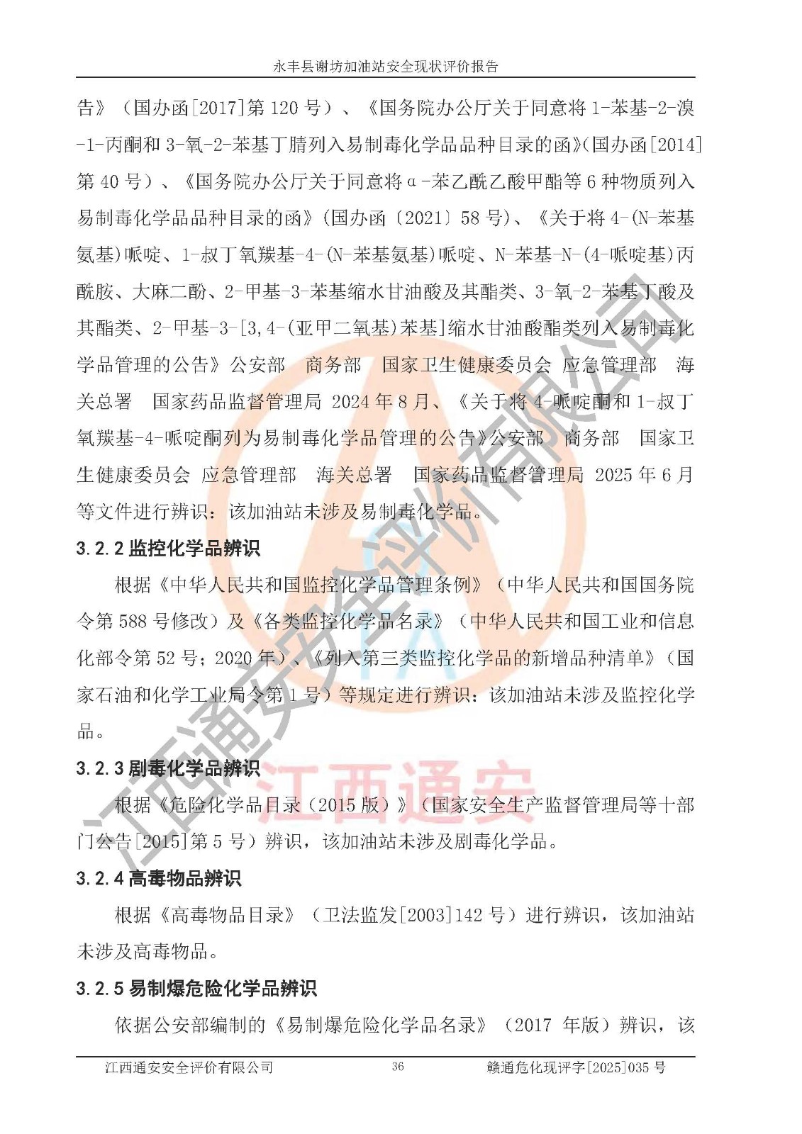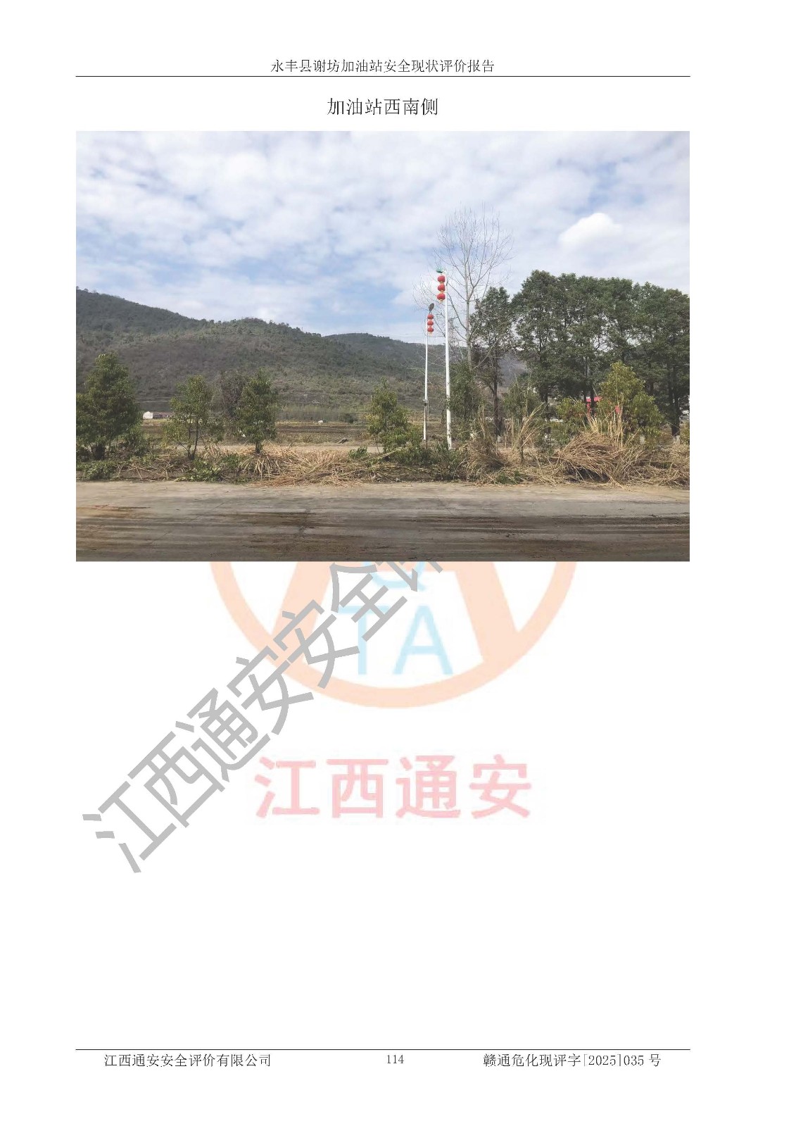項(xiàng)目簡介 | 永豐縣謝坊加油站于2019年10月22日經(jīng)永豐縣市場監(jiān)督管理局核準(zhǔn)注冊成立,營業(yè)場所位于江西省吉安市永豐縣陶唐鄉(xiāng)謝坊村。類型:個(gè)人獨(dú)資企業(yè),投資人:吳道明,營業(yè)執(zhí)照統(tǒng)一社會信用代碼為:91360825MA38XQ860W。營業(yè)執(zhí)照核準(zhǔn)經(jīng)營范圍:成品油(汽油、柴油)零售***(依法須經(jīng)批準(zhǔn)的項(xiàng)目,經(jīng)相關(guān)部門批準(zhǔn)后方可開展經(jīng)營活動(dòng))。 永豐縣謝坊加油站占地面積1332.94㎡,加油站中設(shè)有1臺0#柴油單槍加油機(jī)、1臺0#柴油單槍加油機(jī)、1臺0#柴油單槍加油機(jī)、1臺92#汽油單槍加油機(jī)布置;2臺50m30#柴油雙層埋地儲罐、1臺30m392#汽油/92#汽油雙層分艙埋地儲罐(中間對半隔開,15m392#汽油,15m392#汽油),油品*大儲存能力為80m3(柴油罐容積折半計(jì)入油罐總?cè)莘e),屬三級加油站,汽油卸油、加油設(shè)置了油氣回收系統(tǒng)。 永豐縣謝坊加油站于2022年9月26日經(jīng)吉安市應(yīng)急管理局核準(zhǔn),換發(fā)了新的《危險(xiǎn)化學(xué)品經(jīng)營許可證》,證書編號:贛吉?;?jīng)字[2022]360800000044號,許可范圍:成品油。**期2022年11月3日至2025年11月2日。 永豐縣謝坊加油站2020年12月15日經(jīng)吉安市商務(wù)局核準(zhǔn),換取了新的《成品油零售經(jīng)營批準(zhǔn)證書》,證書編號:油零售證書第吉0051號,批準(zhǔn)從事成品油(汽油、柴油)零售業(yè)務(wù)。證書**期至2020年12月15日至2025年12月14日。 | ||||