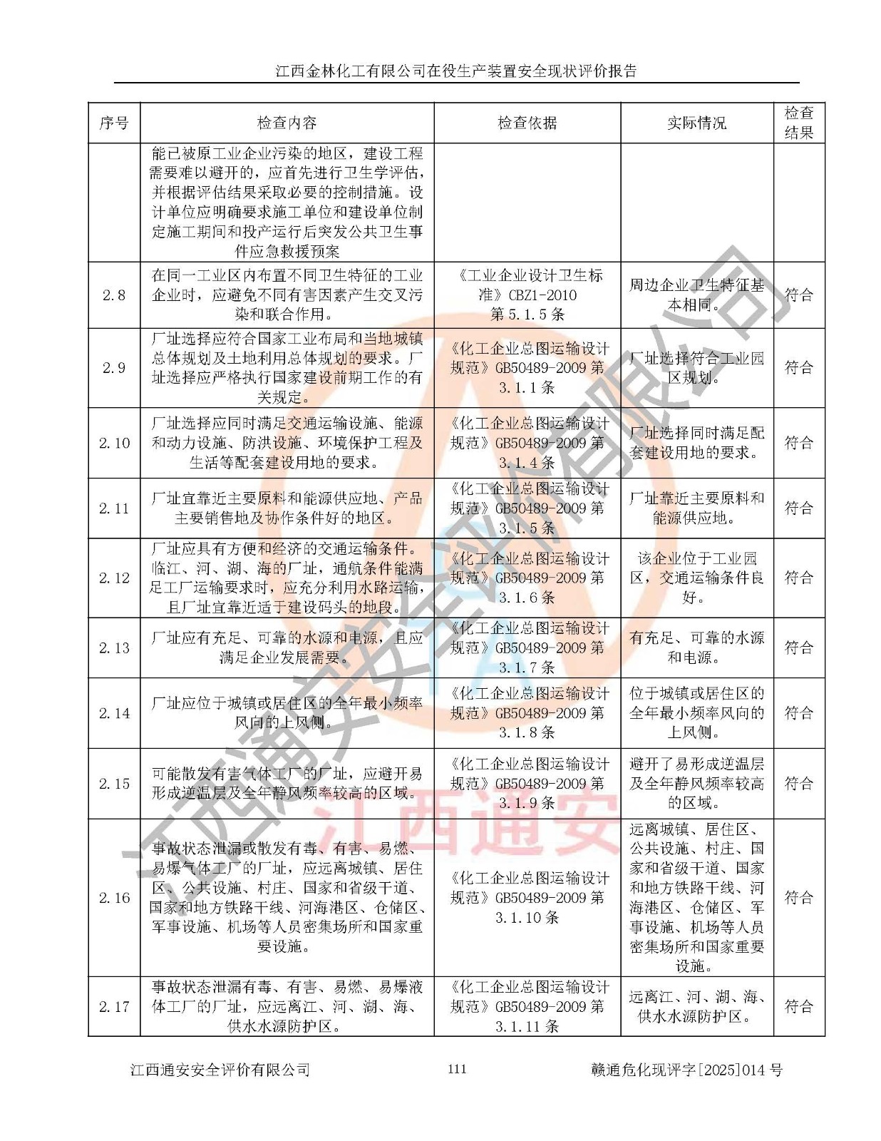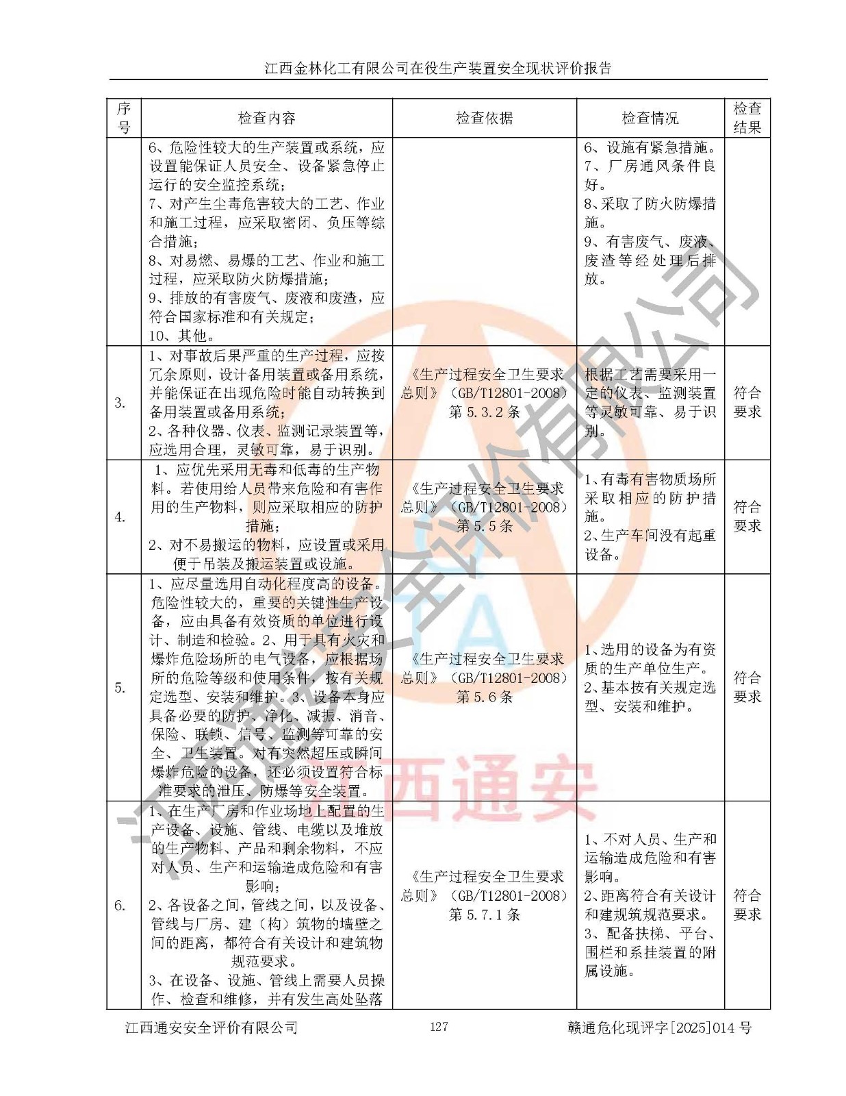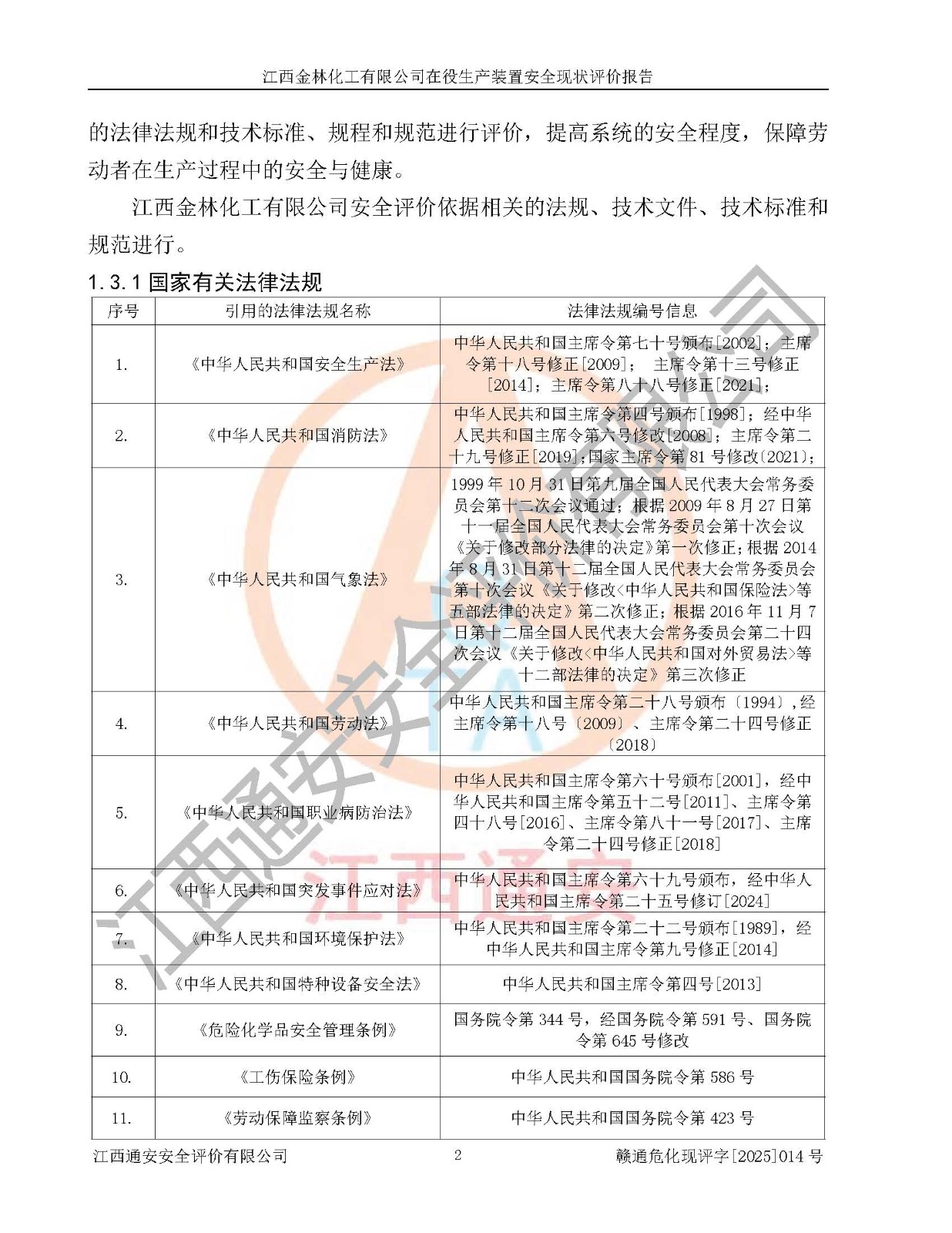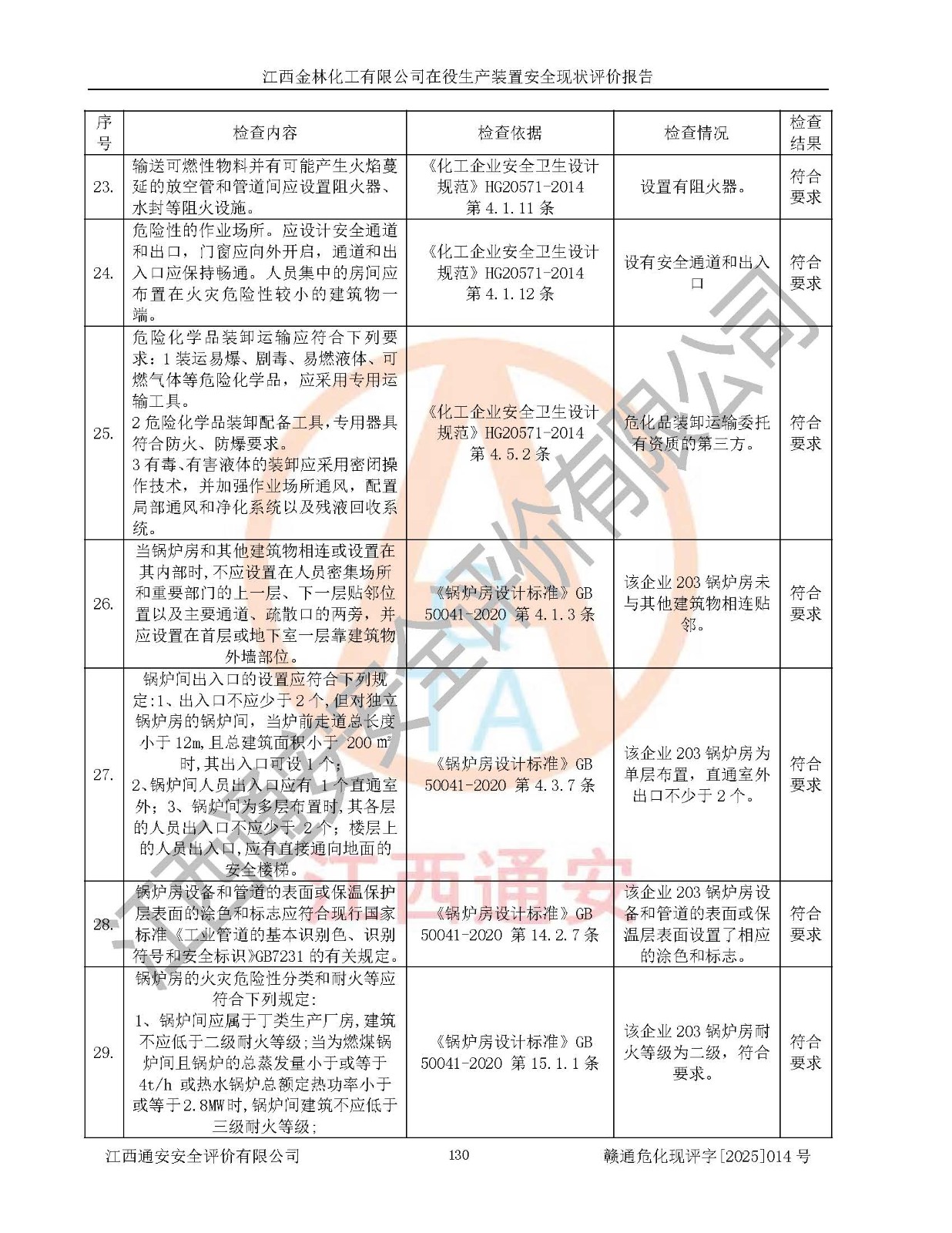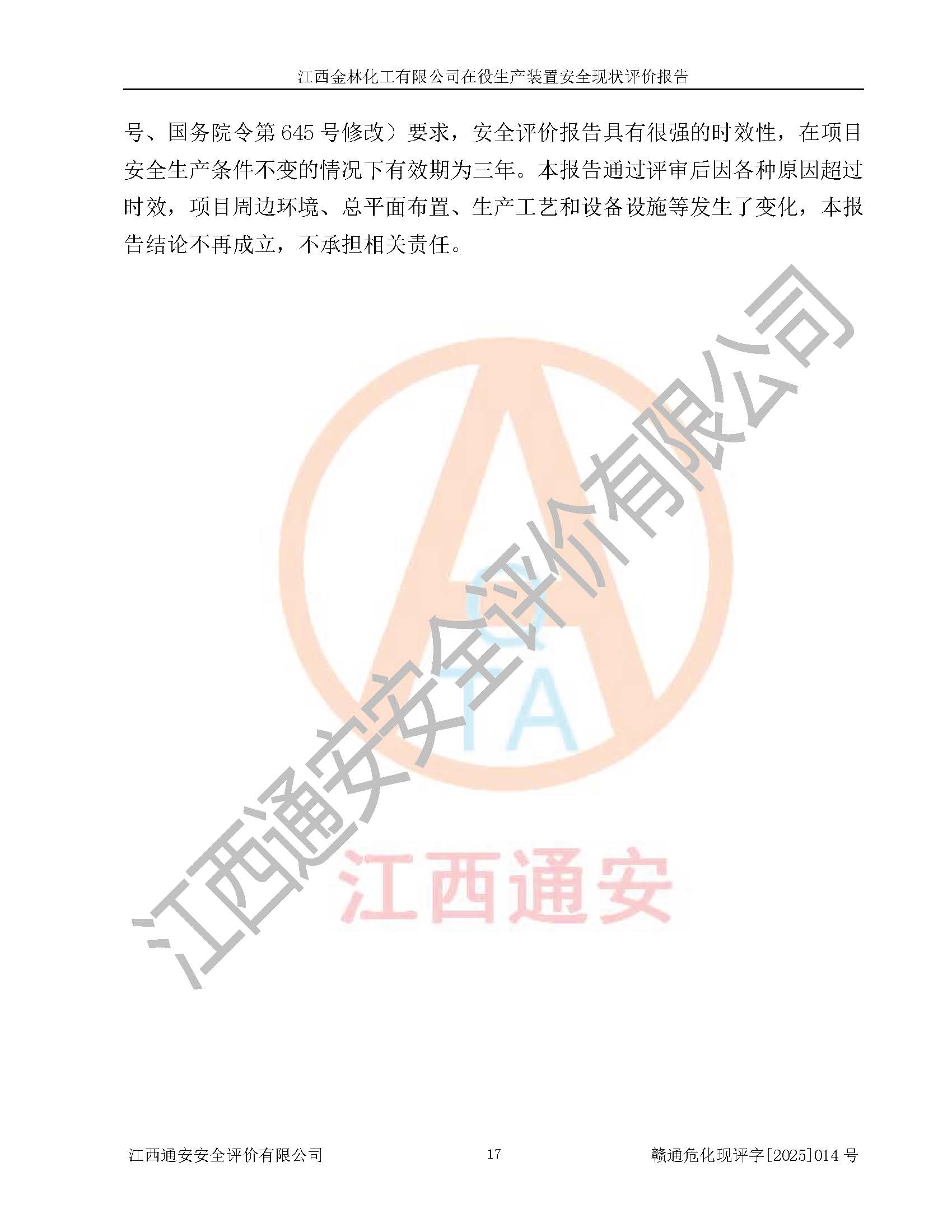 評價報告名稱 | 江西金林化工有限公司在役生產(chǎn)裝置安全現(xiàn)狀評價報告 | |||