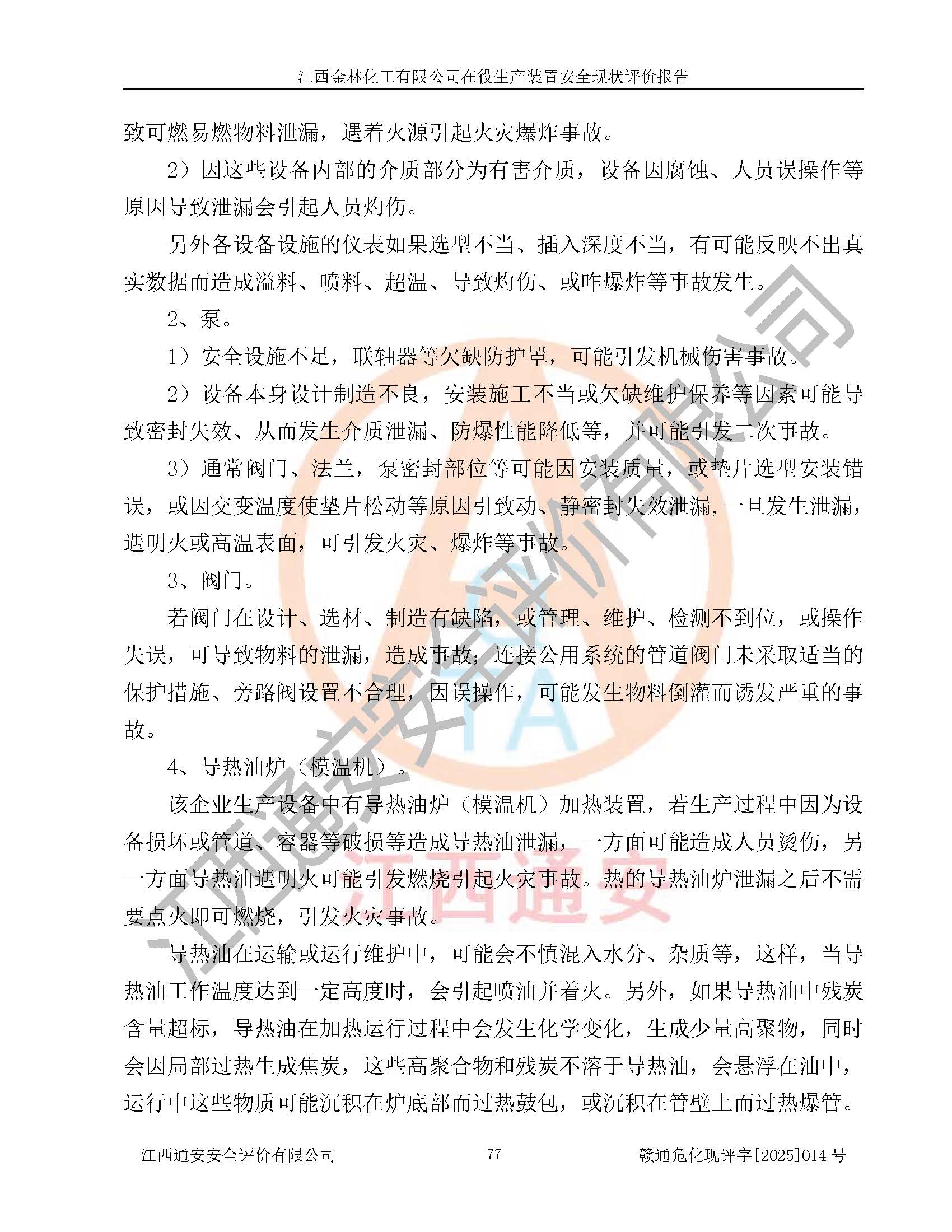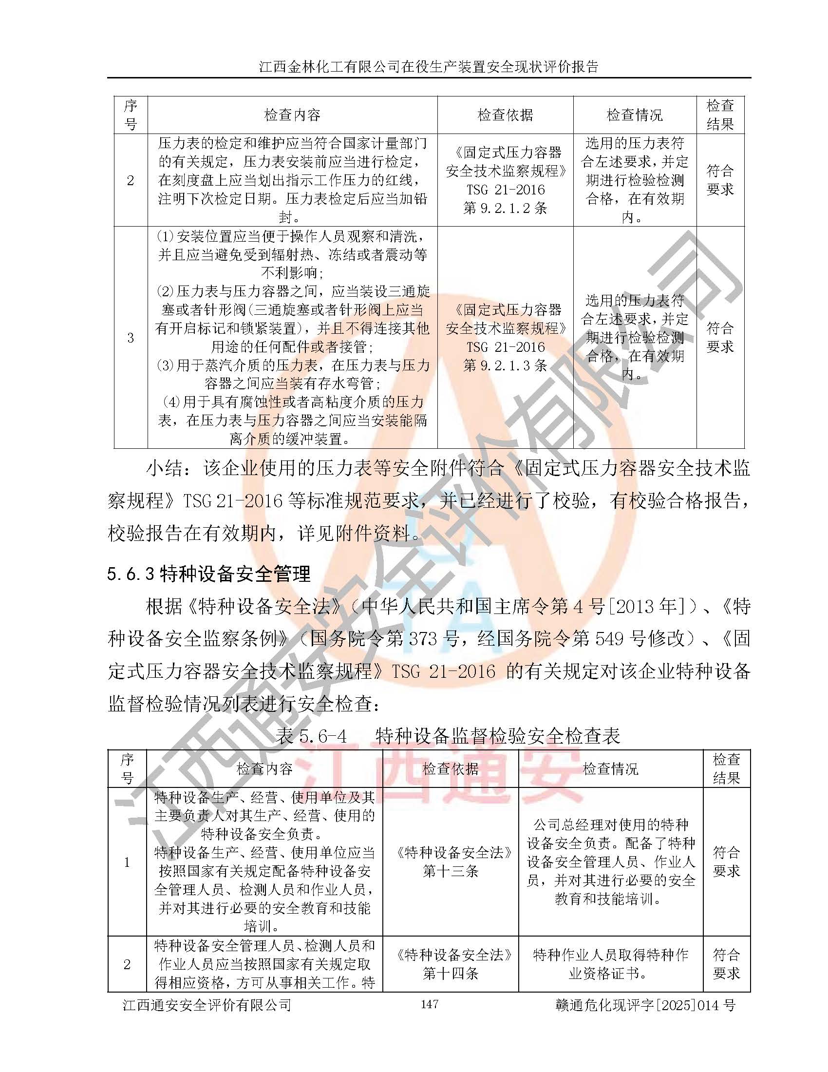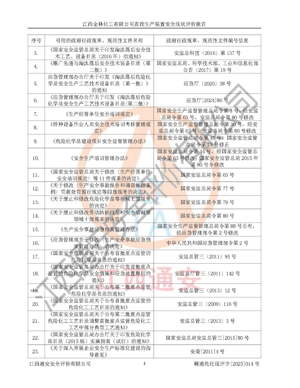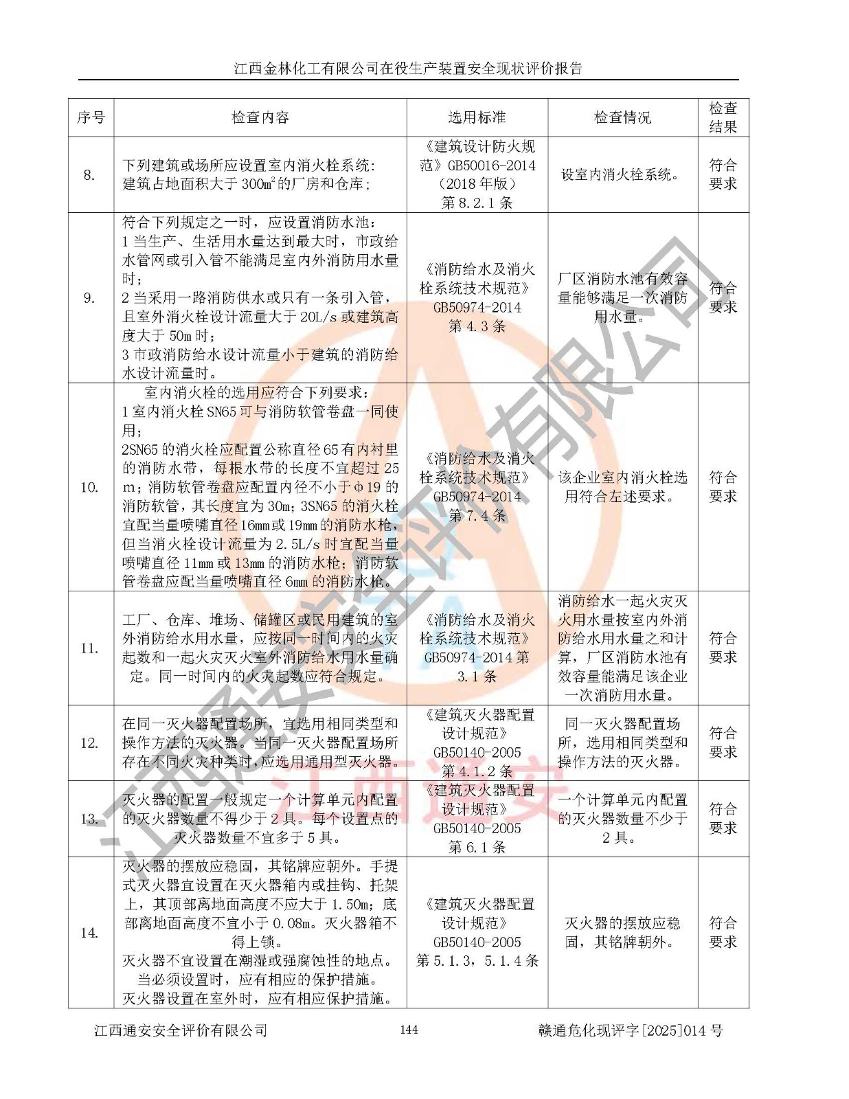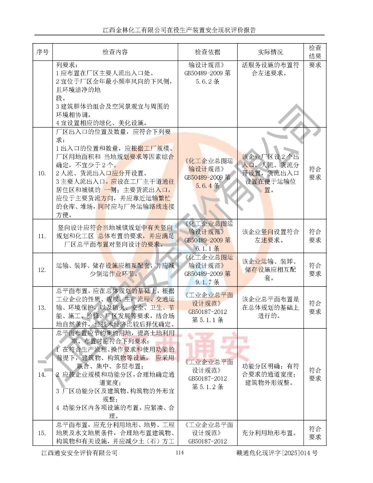 評價報告名稱 | 江西金林化工有限公司在役生產(chǎn)裝置安全現(xiàn)狀評價報告 | |||