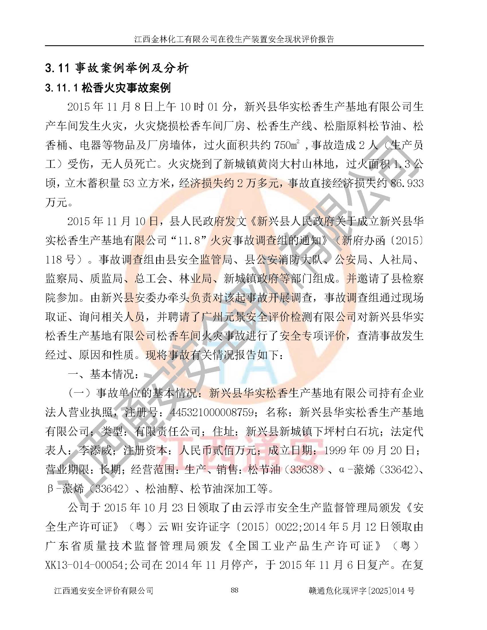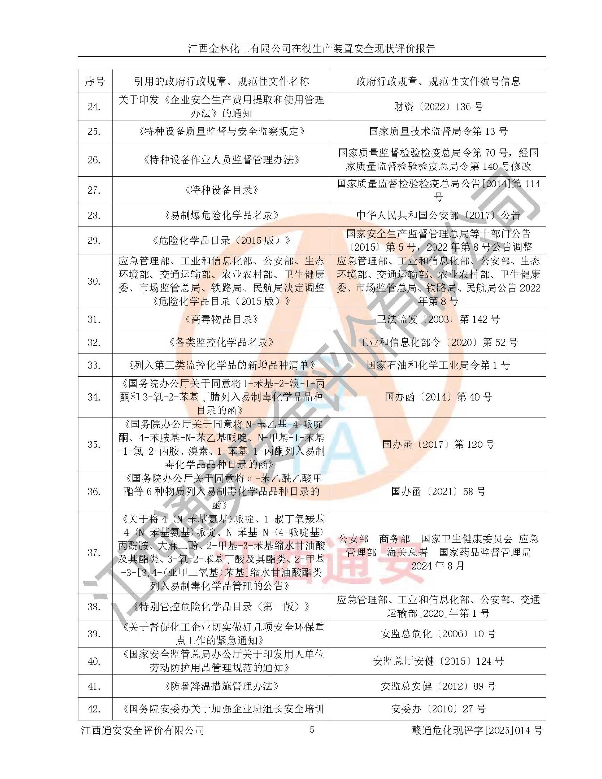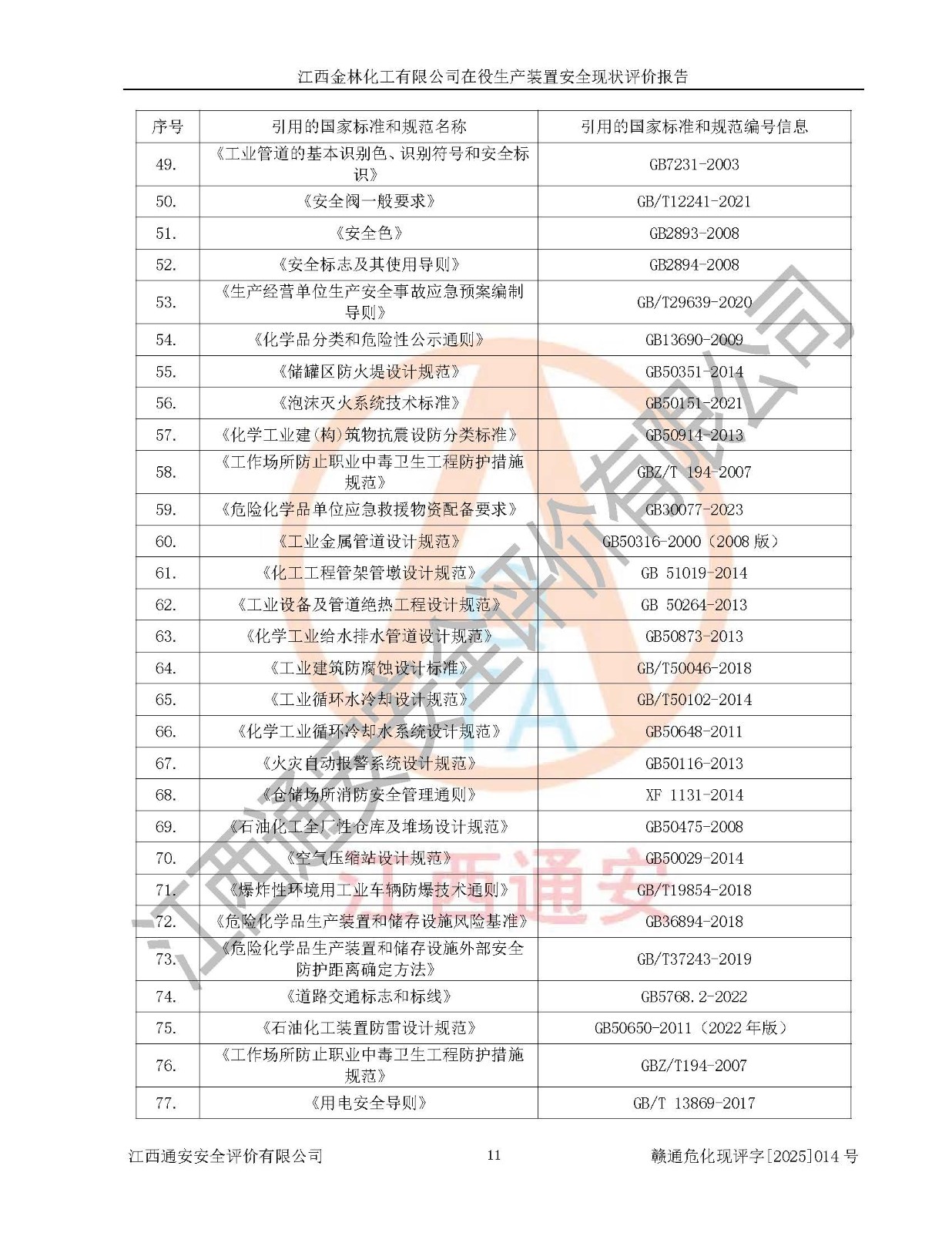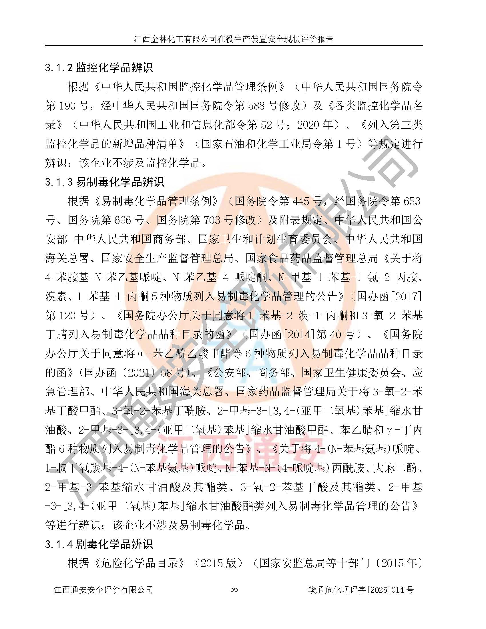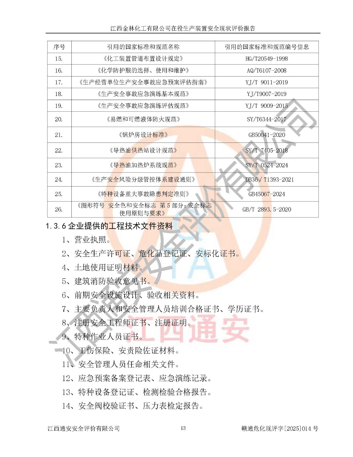 評價報告名稱 | 江西金林化工有限公司在役生產(chǎn)裝置安全現(xiàn)狀評價報告 | |||