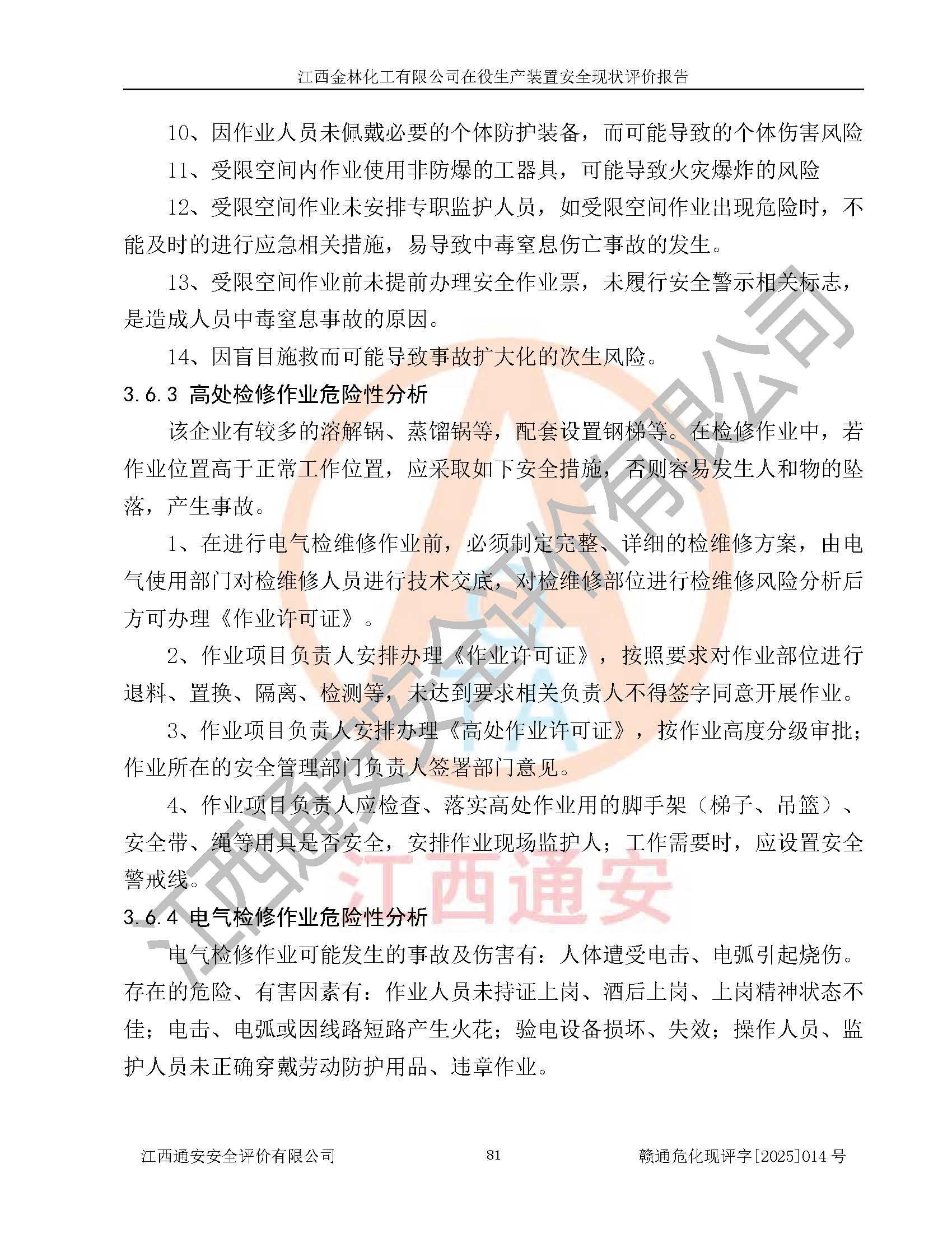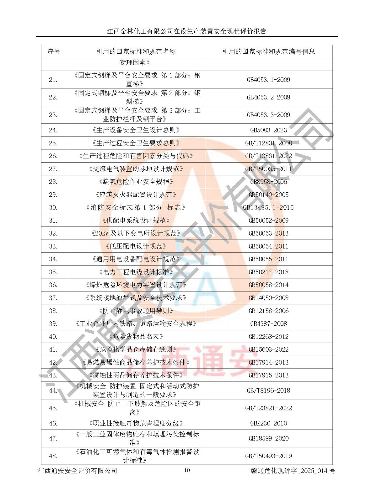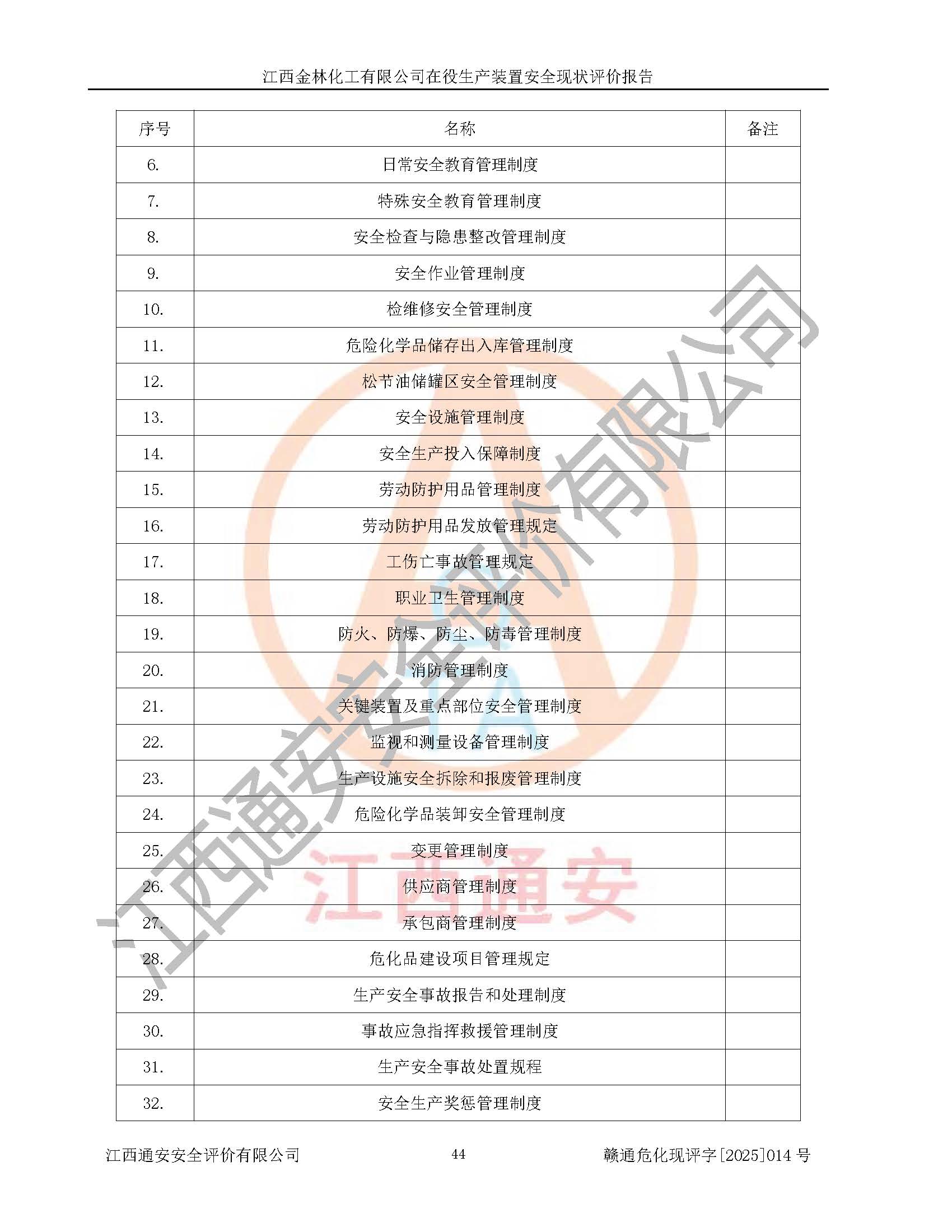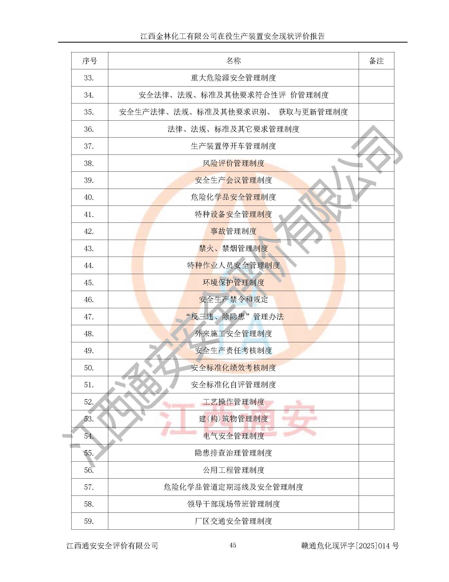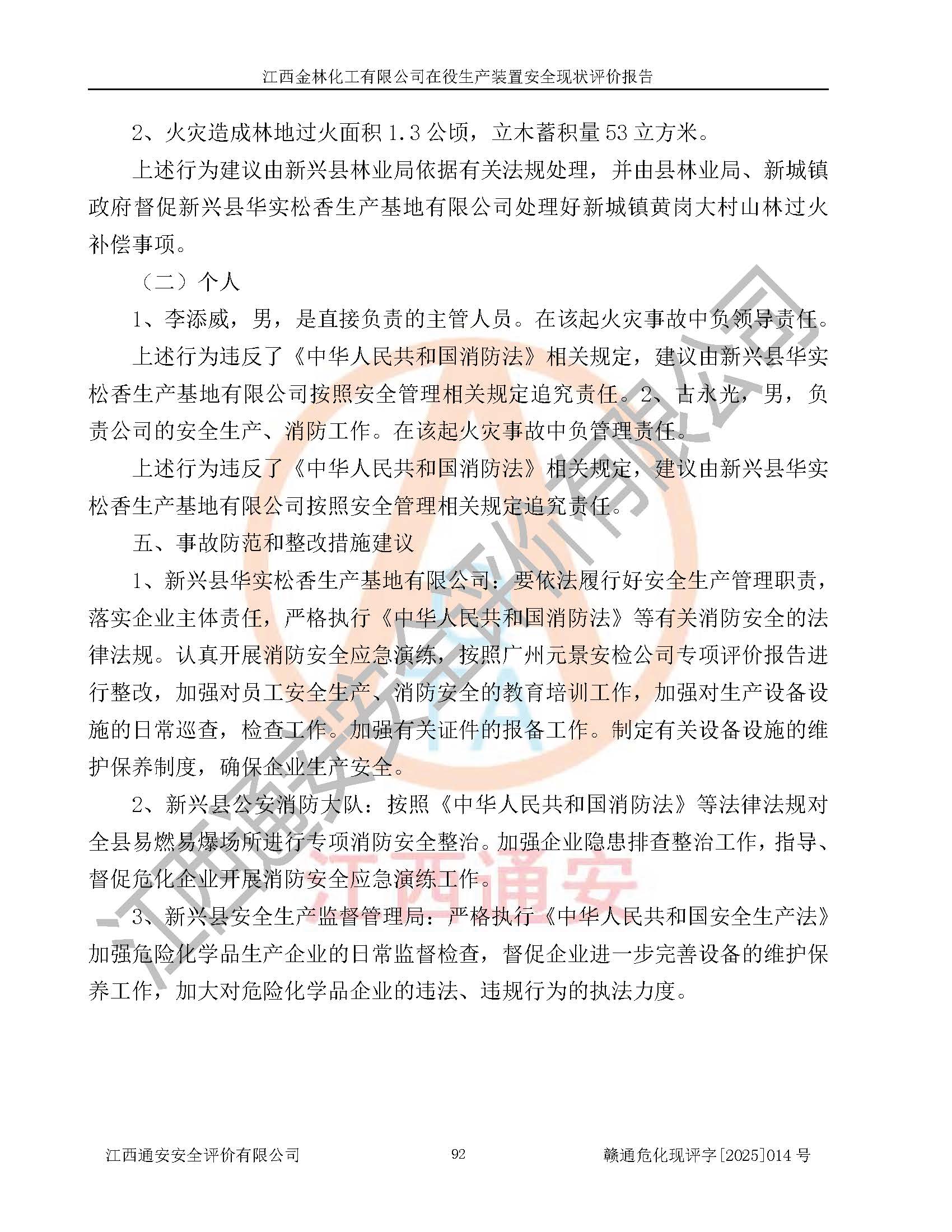 評價報告名稱 | 江西金林化工有限公司在役生產(chǎn)裝置安全現(xiàn)狀評價報告 | |||