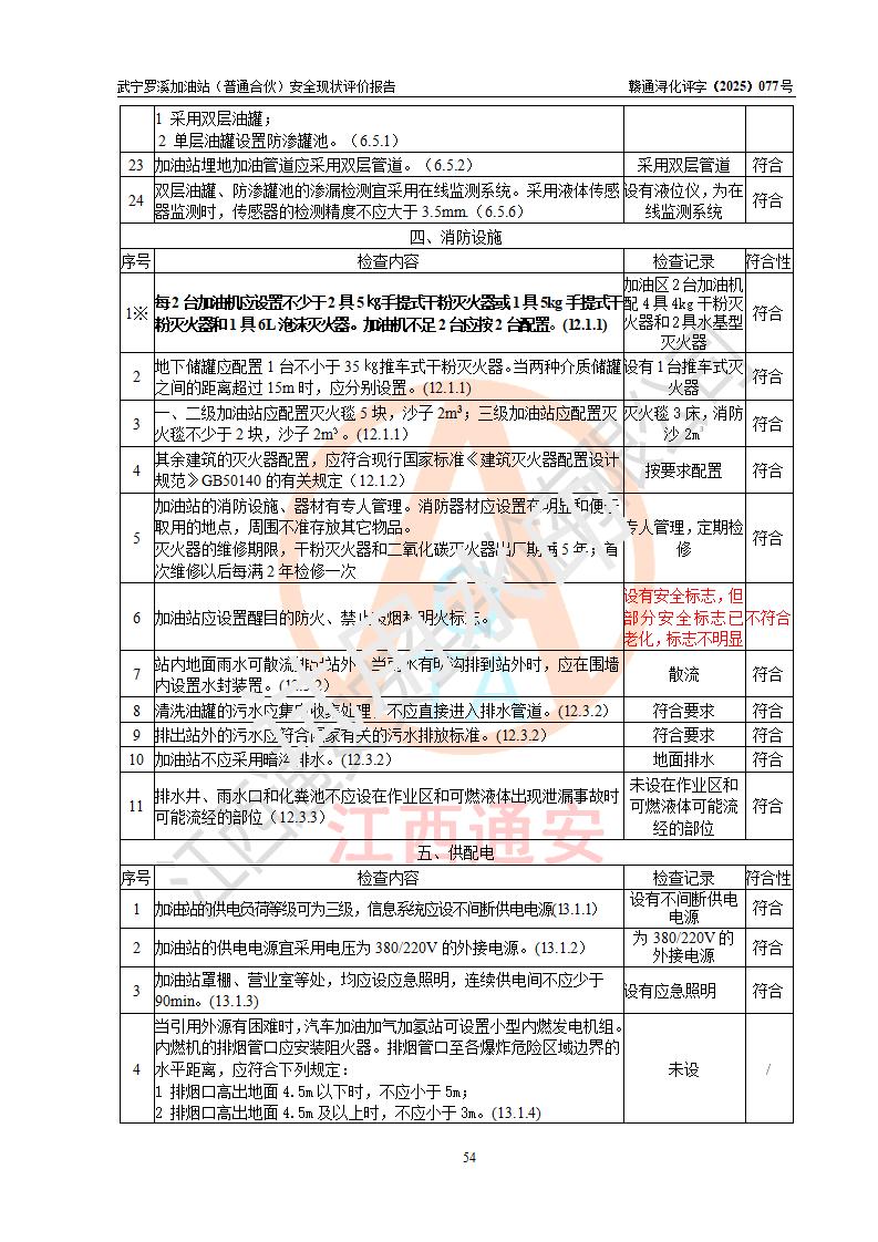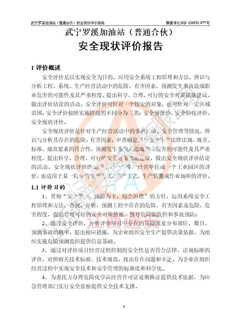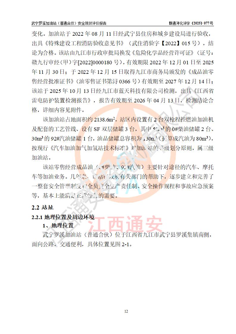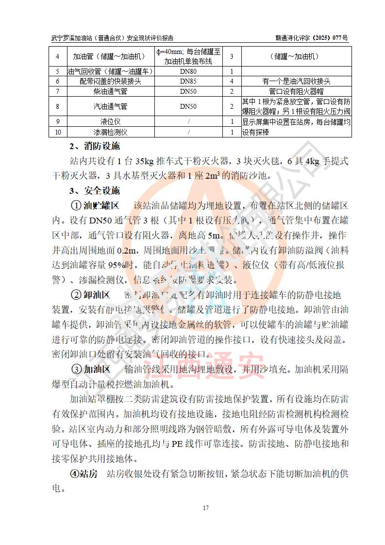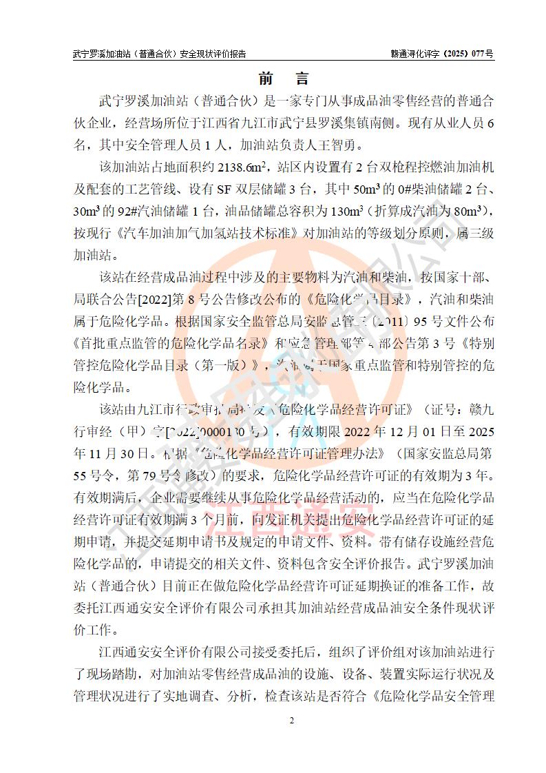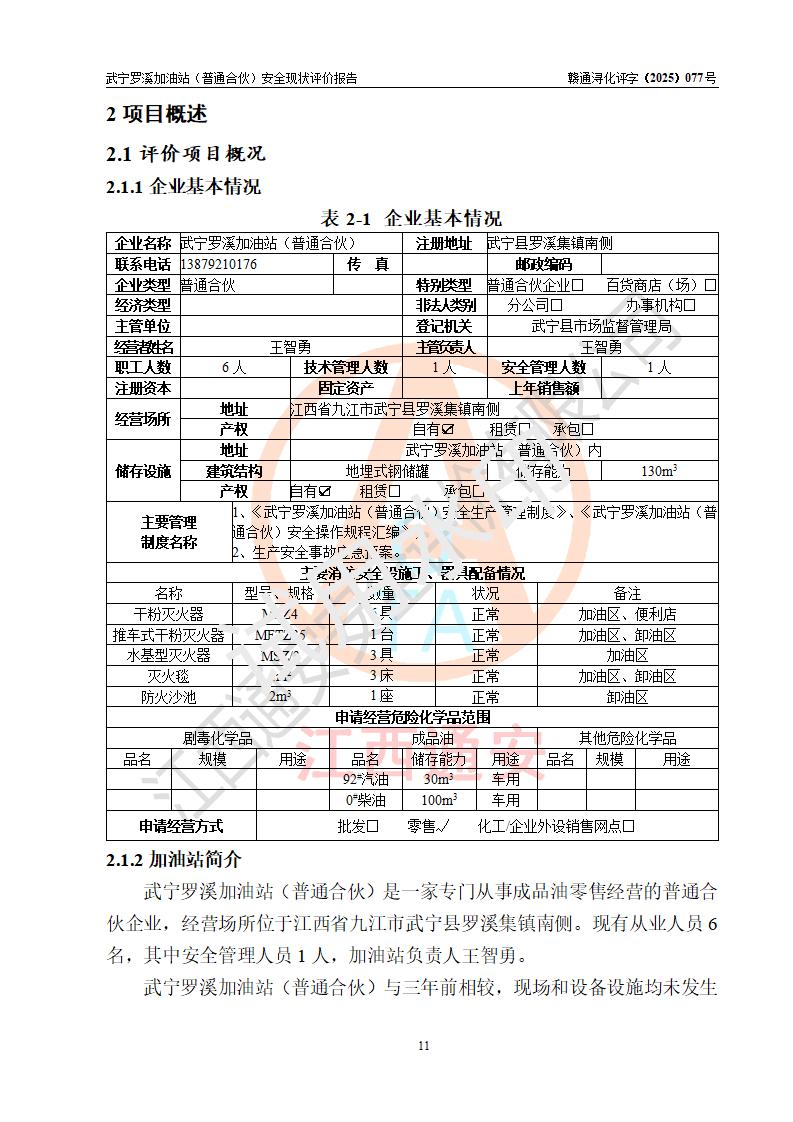 評價報告名稱 | 武寧羅溪加油站(普通合伙)安全現(xiàn)狀評價報告 | |||