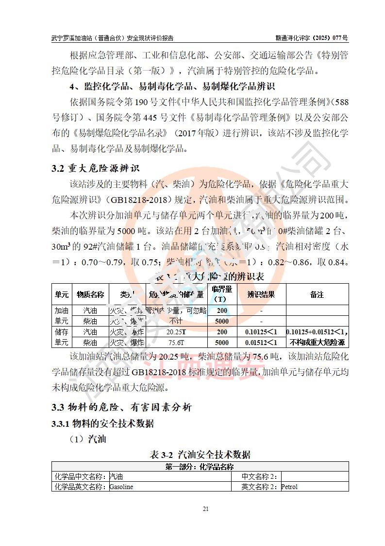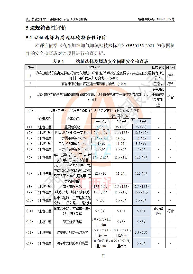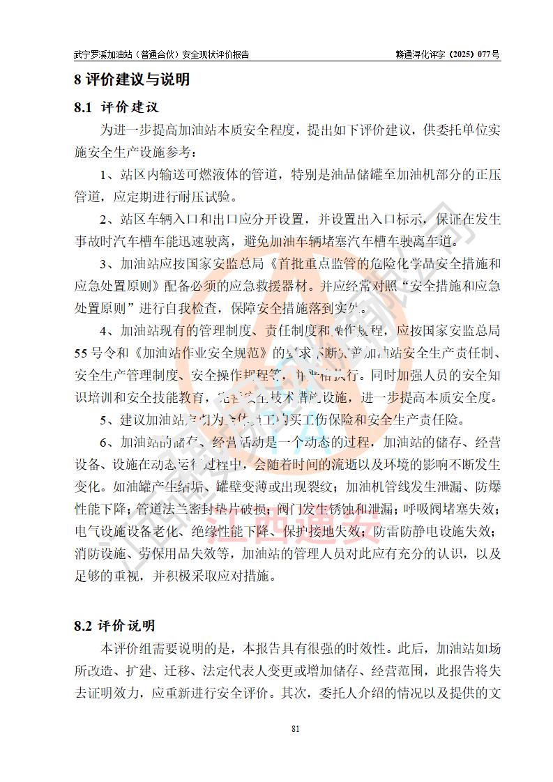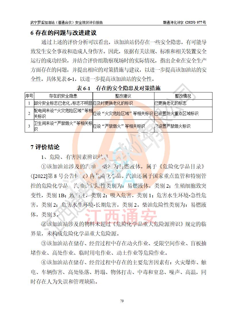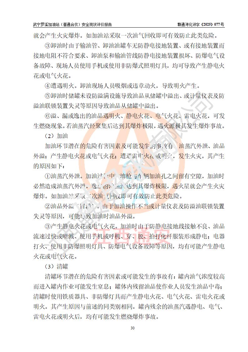評價報告名稱 | 武寧羅溪加油站(普通合伙)安全現(xiàn)狀評價報告 | |||