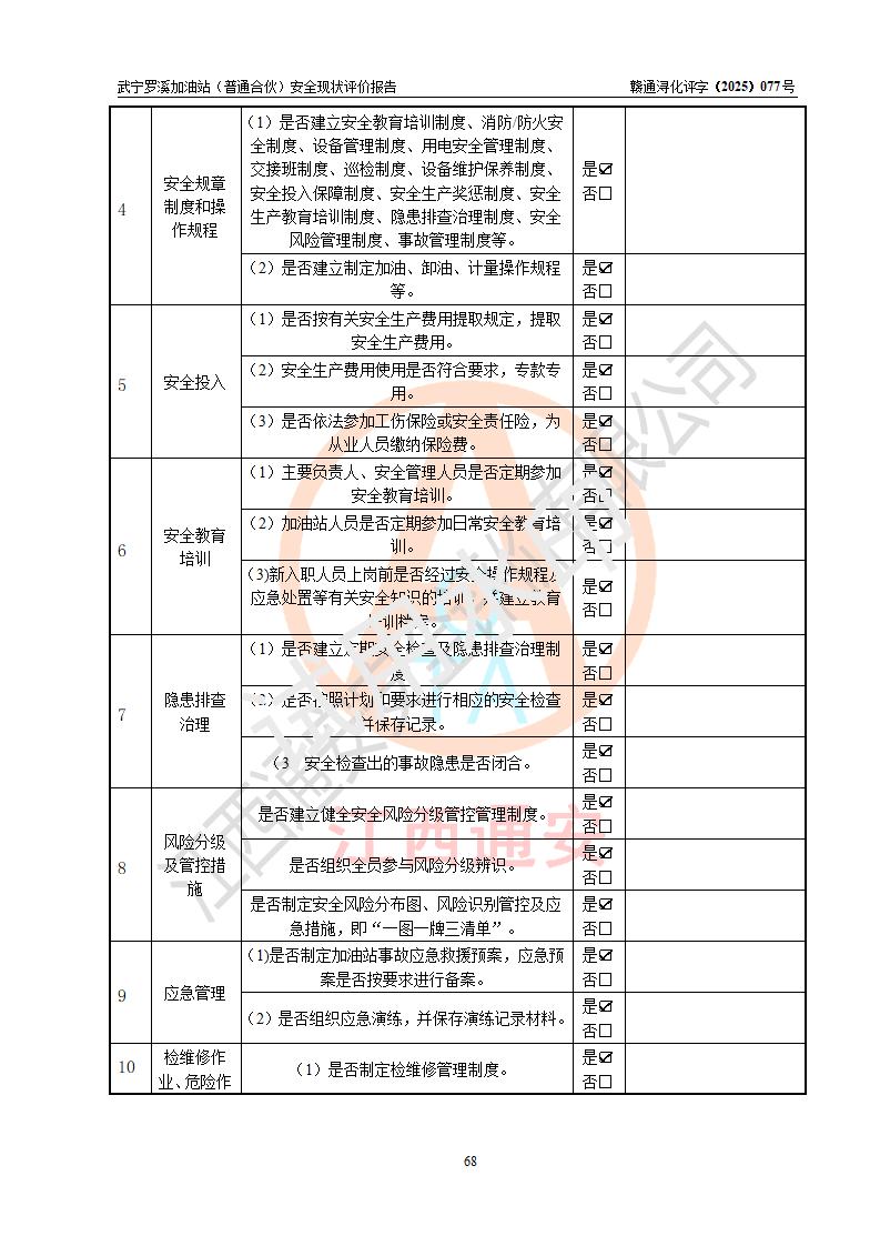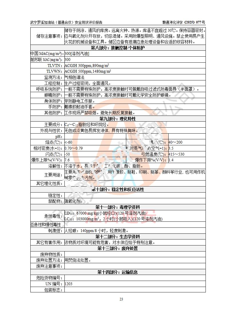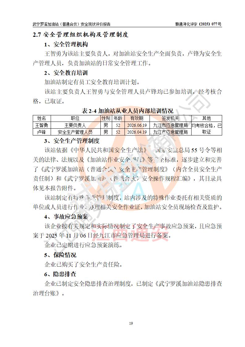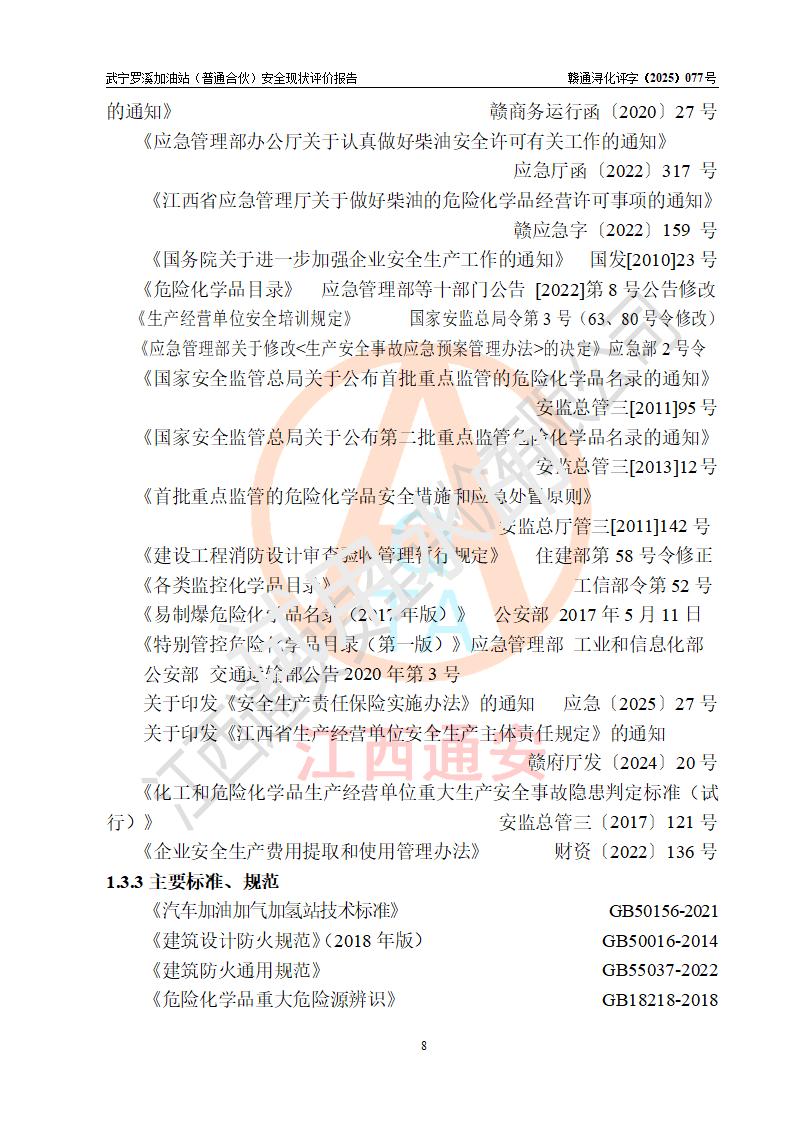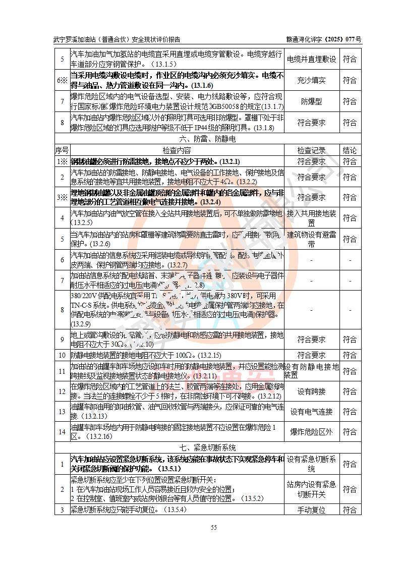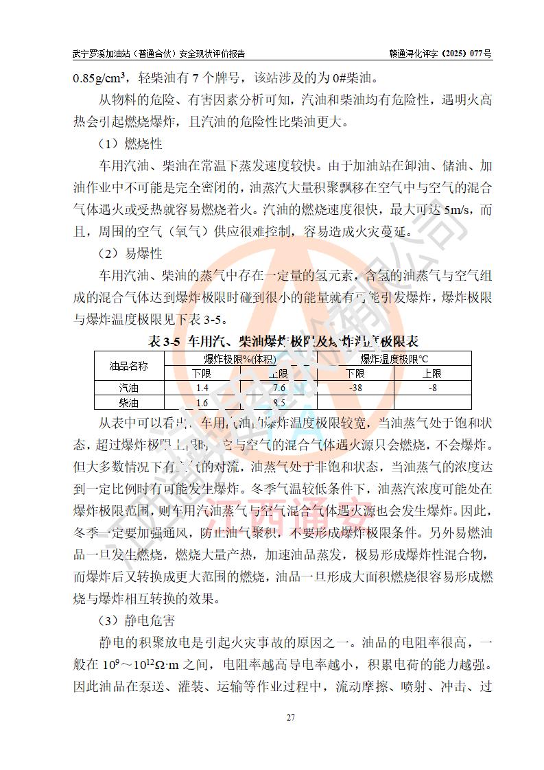 評價報告名稱 | 武寧羅溪加油站(普通合伙)安全現(xiàn)狀評價報告 | |||